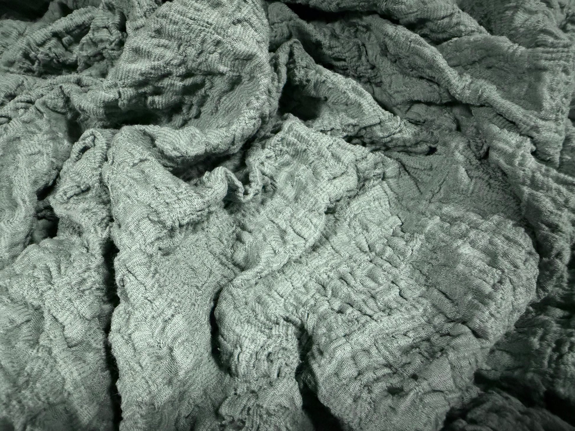 Blister jacquard stretch woven fabric, per metre - solid - duck egg