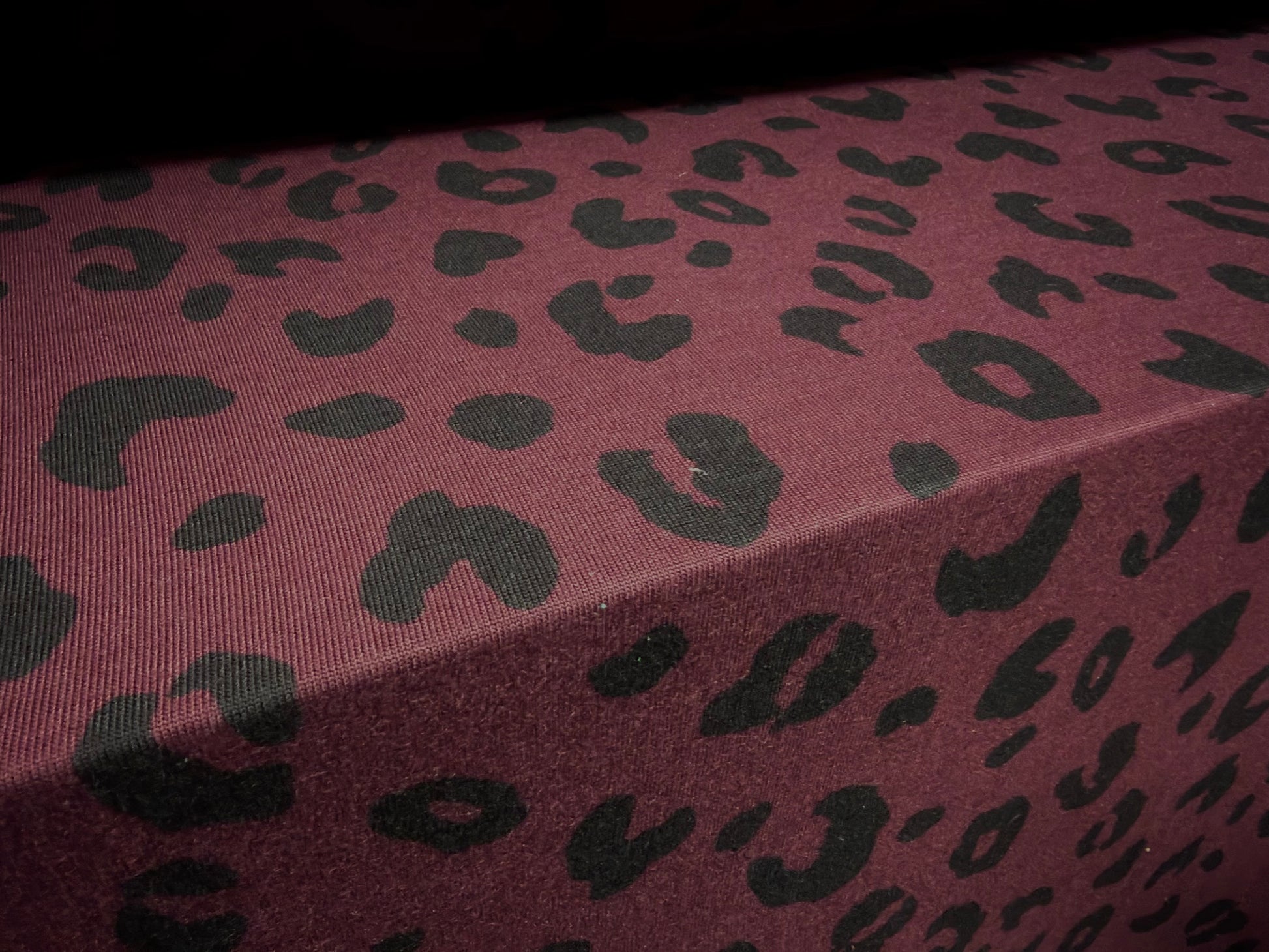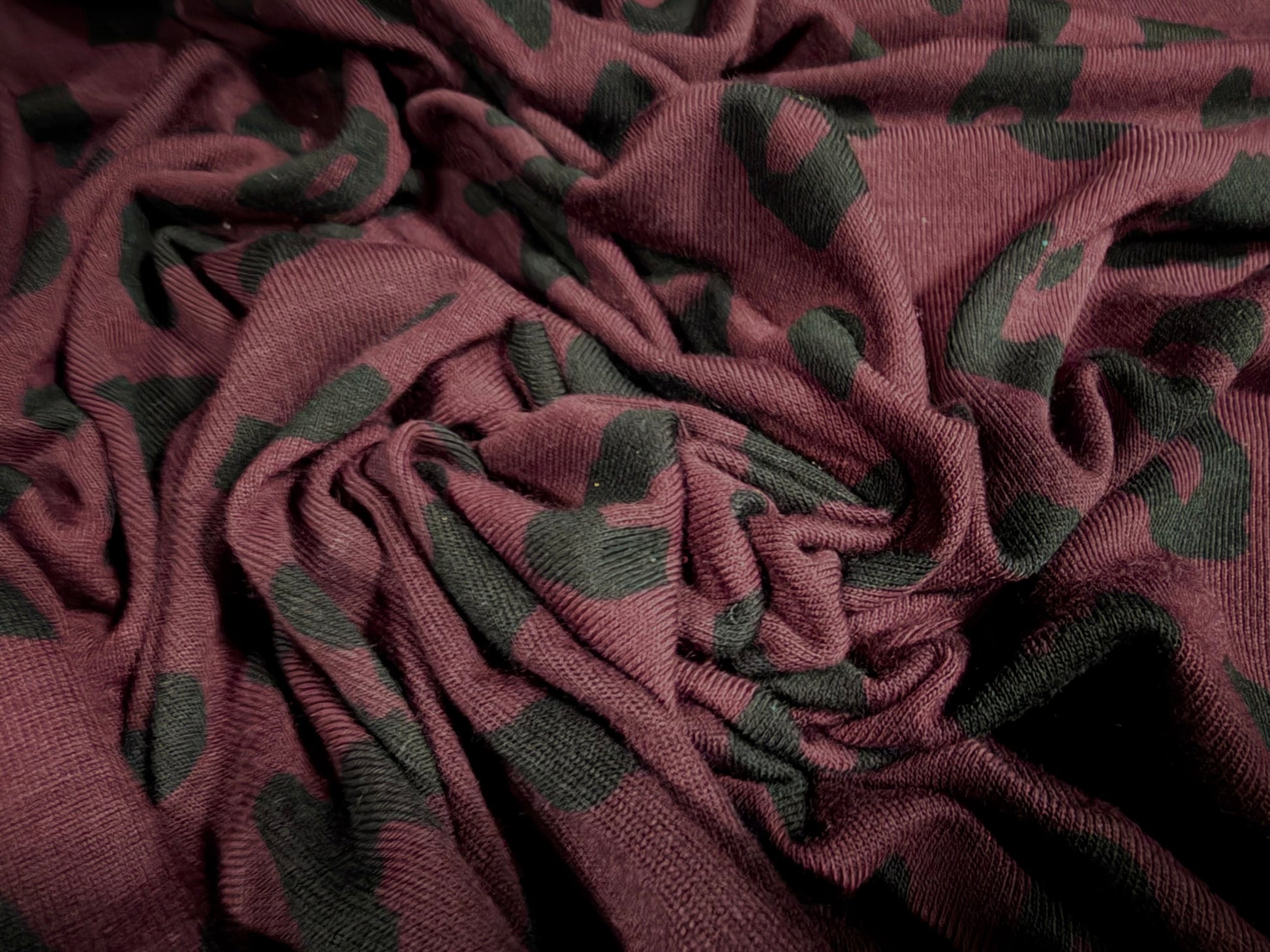 Lightweight jersey knitwear fabric, per metre - cheetah animal print - dark plum