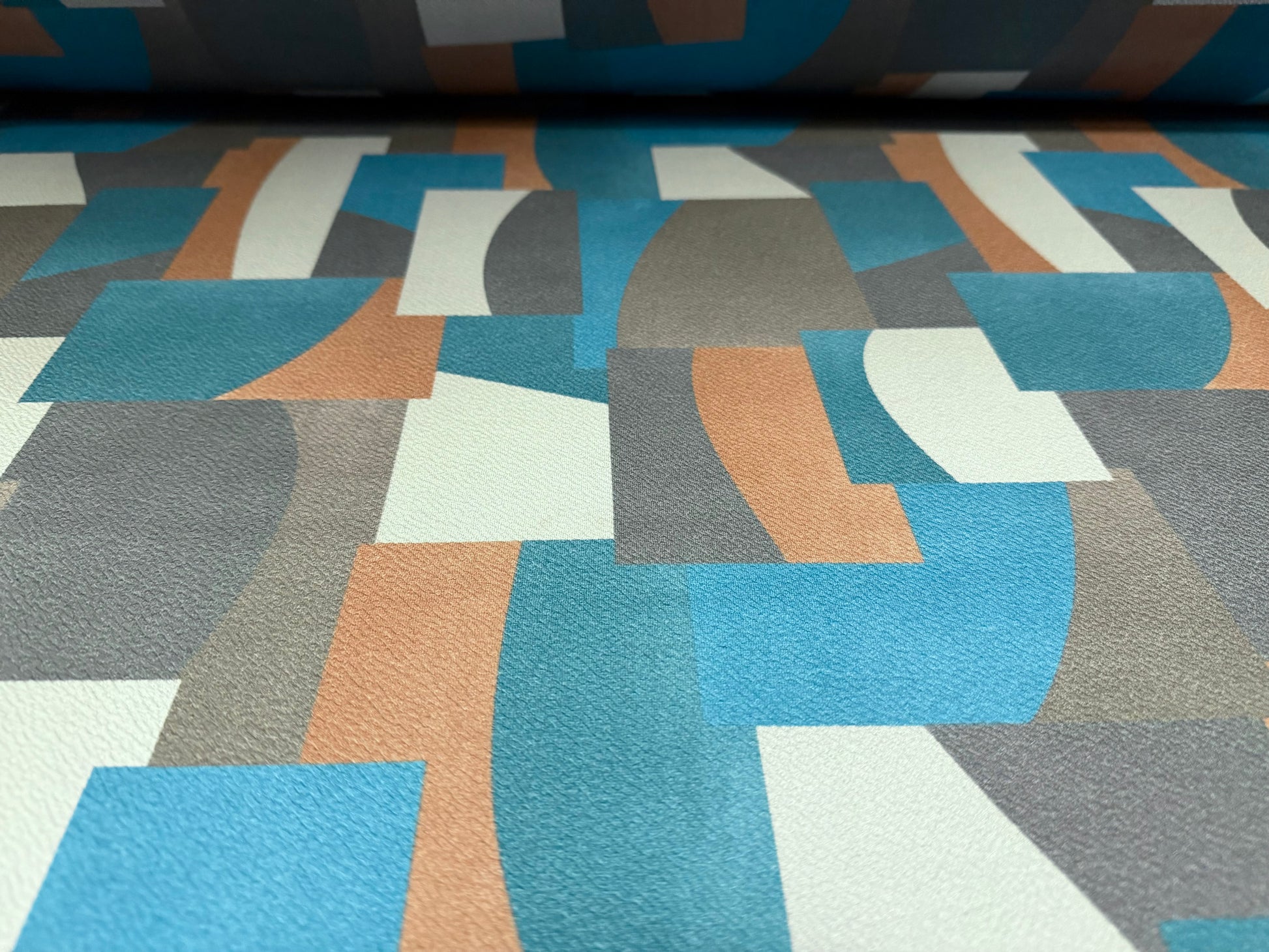 ‘Liverpool’ textured scuba stretch spandex jersey fabric, per metre - colour block print - aqua teal & terracotta
