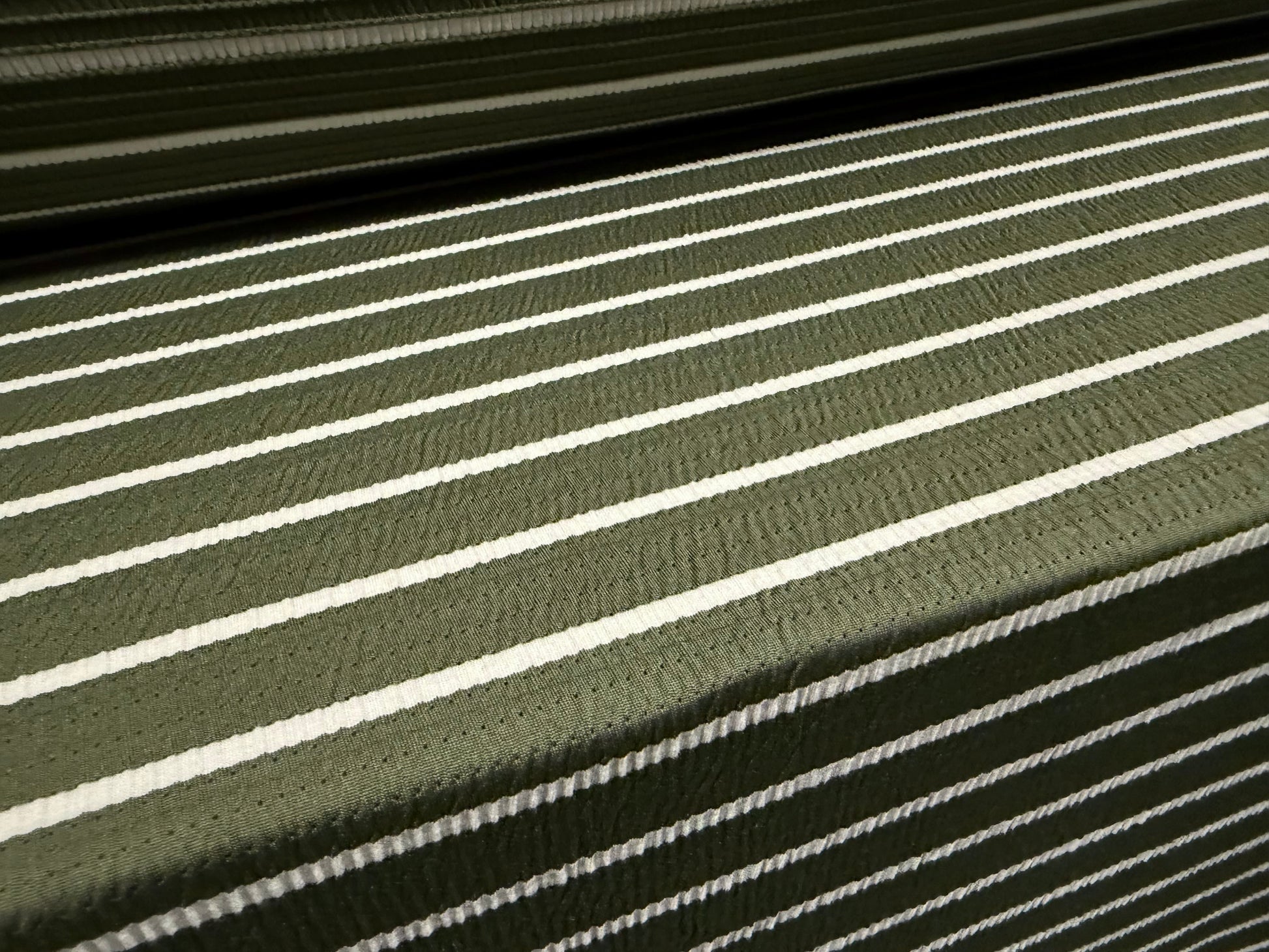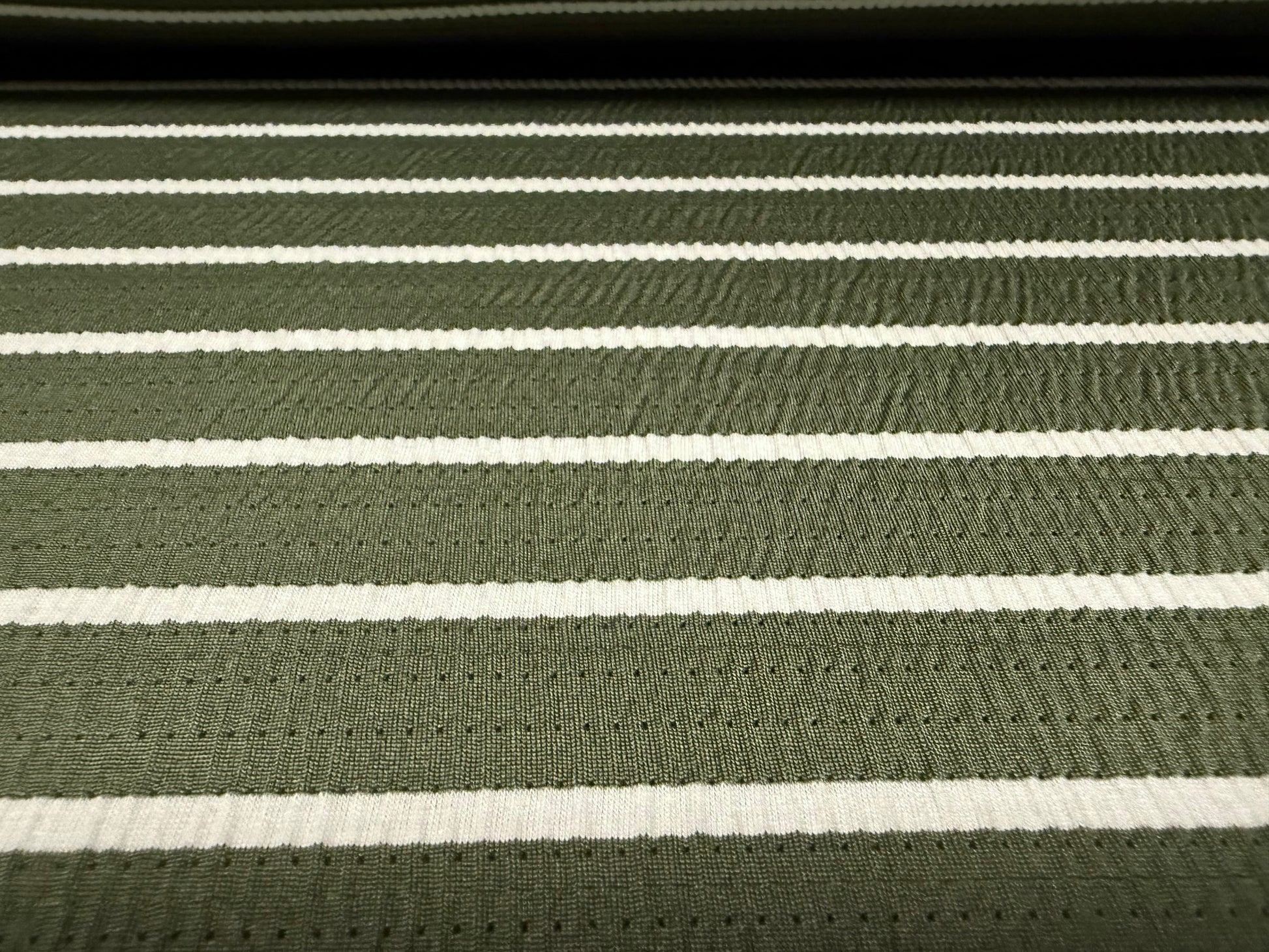 Stretch crinkle jersey fashion fabric, per metre - stripe - khaki green & white