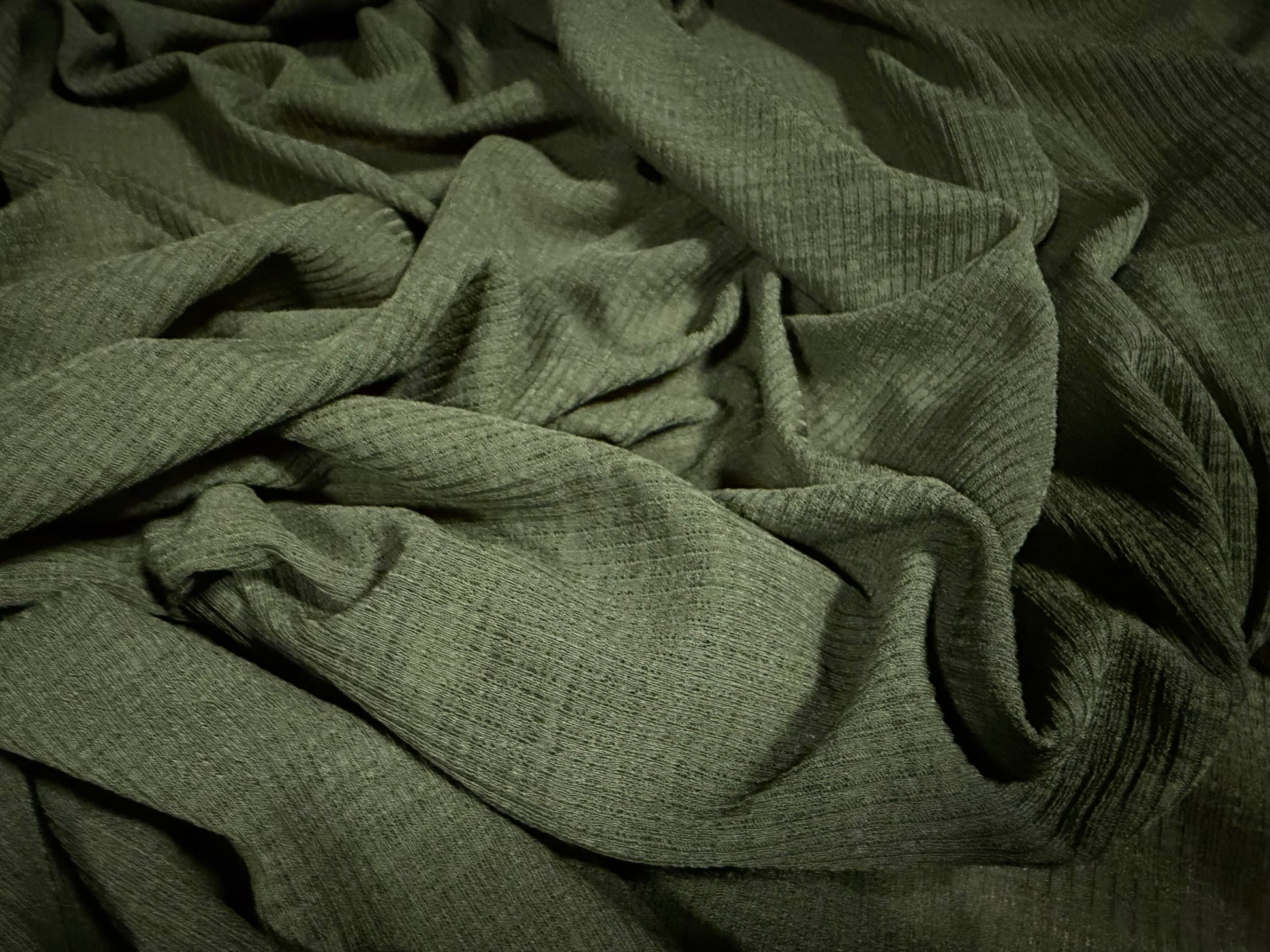 Thick & thin rib stretch spandex single jersey fashion fabric, per metre - plain - olive green