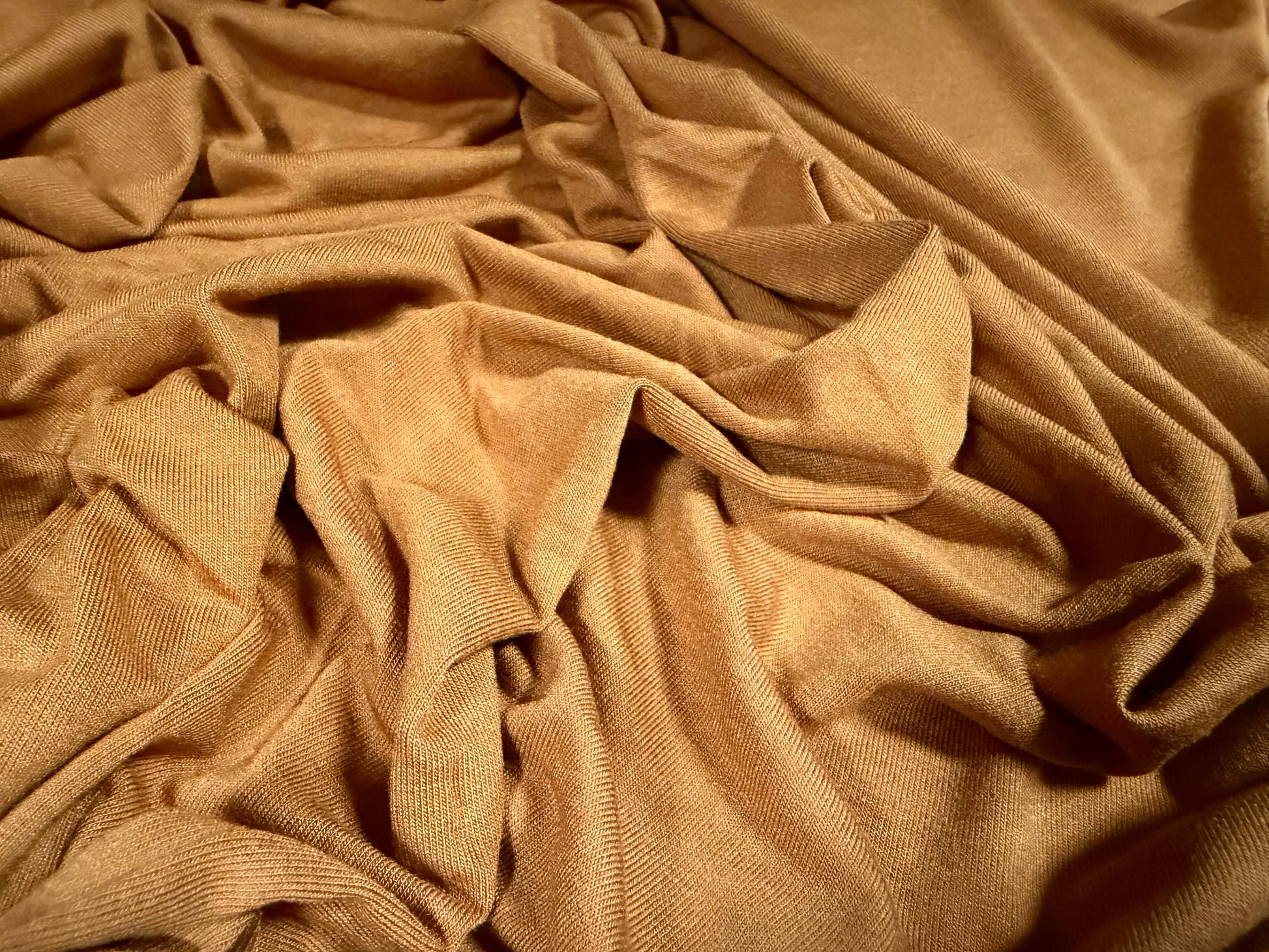 Viscose spandex stretch single jersey fabric, per metre - plain - roasted butternut squash