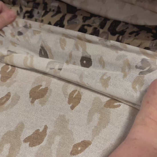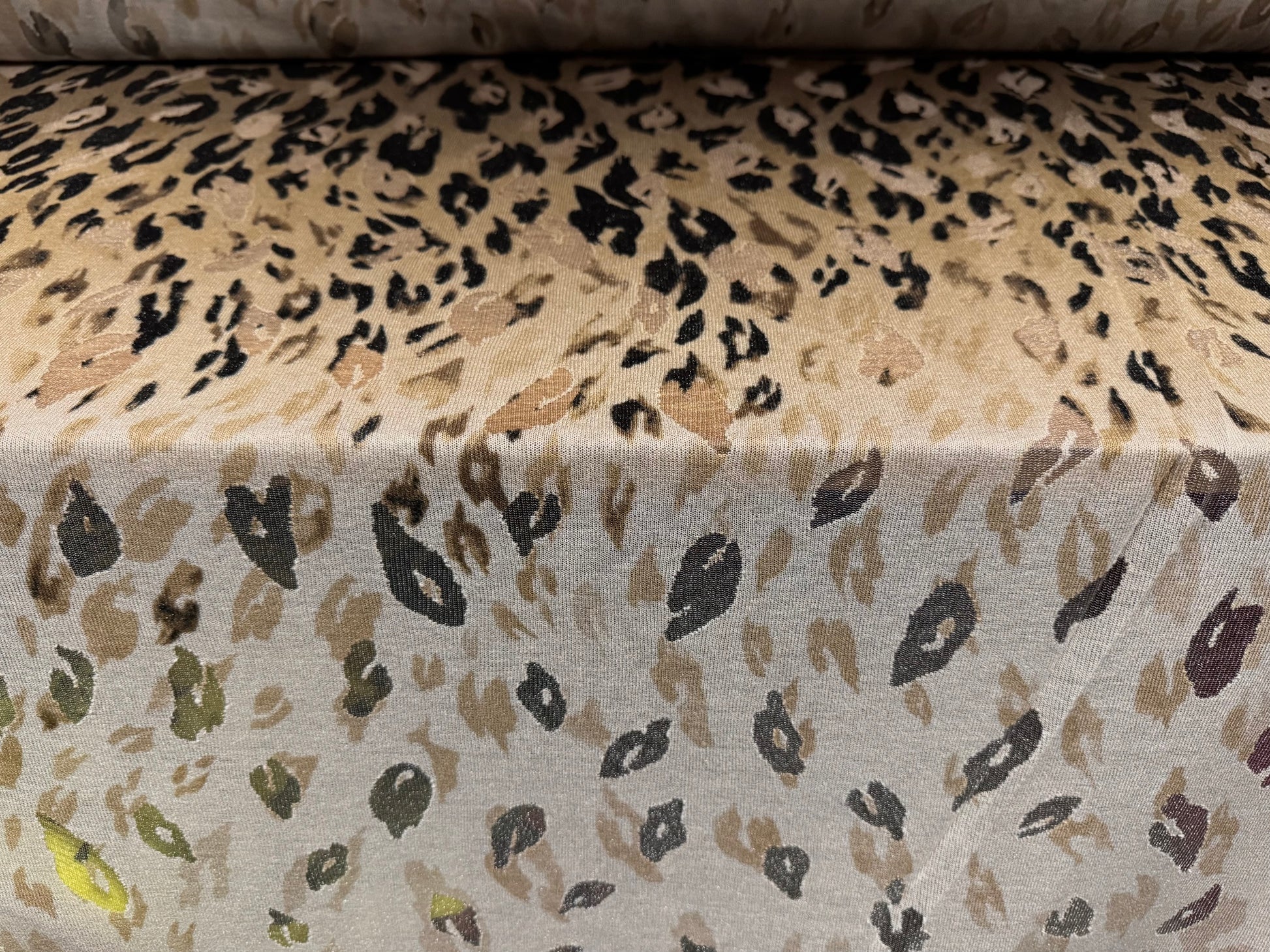 Burnout crepe single jersey fabric, per metre - leopard panel print - gold & beige