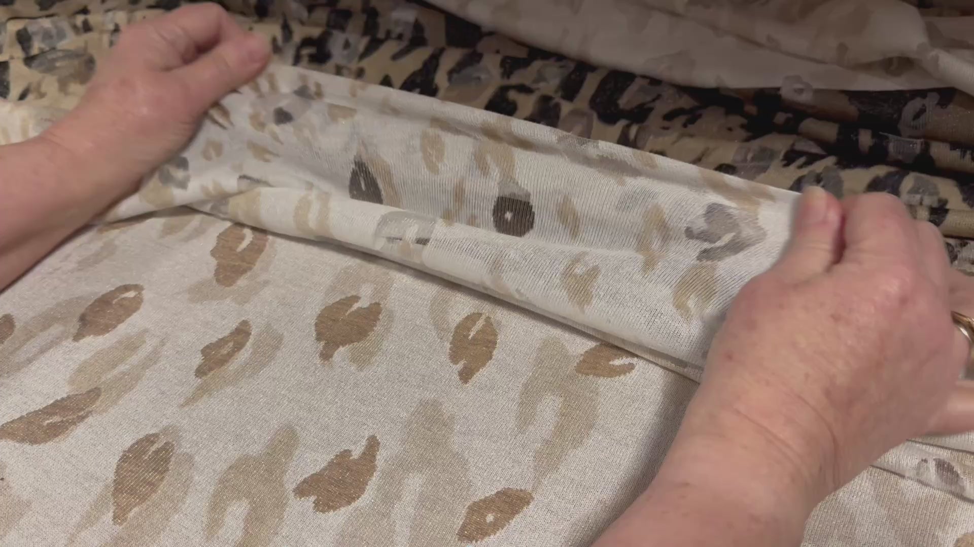 Leopardskin print burnout jersey fabric in panels of approximately 1 metre. Width 150 cms. Polyester with little stretch.