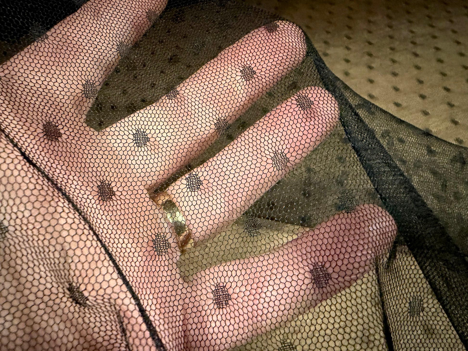 Fine lightweight mesh net fabric, per metre - dobby spot - black