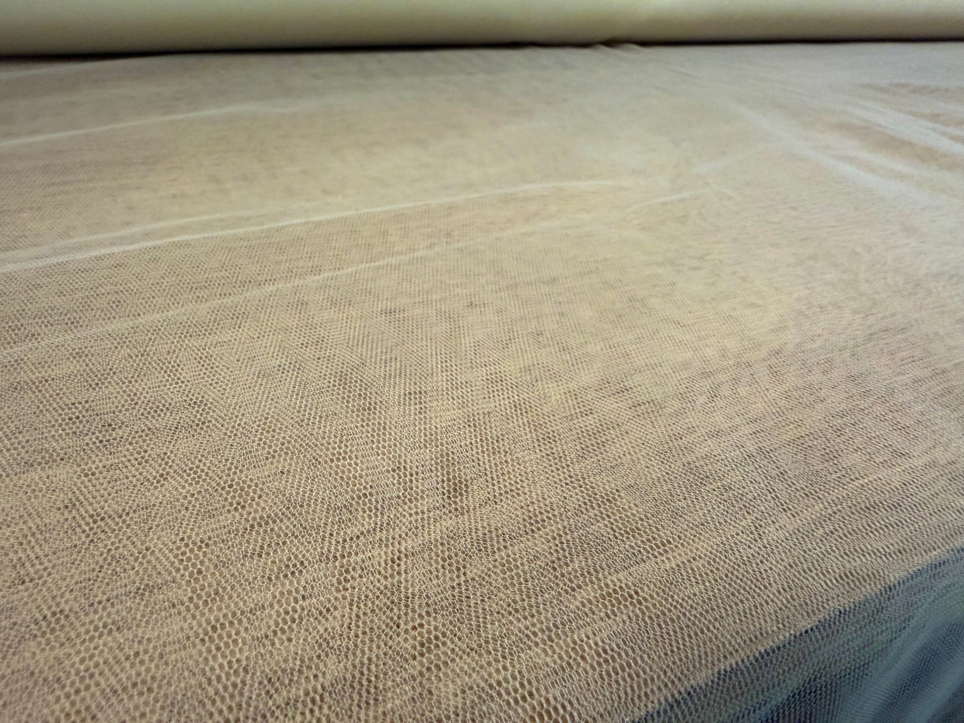 Nylon lightweight net tulle mesh fabric. Medium flex.Double width of 300 cms. Very lightweight. Soft handle.