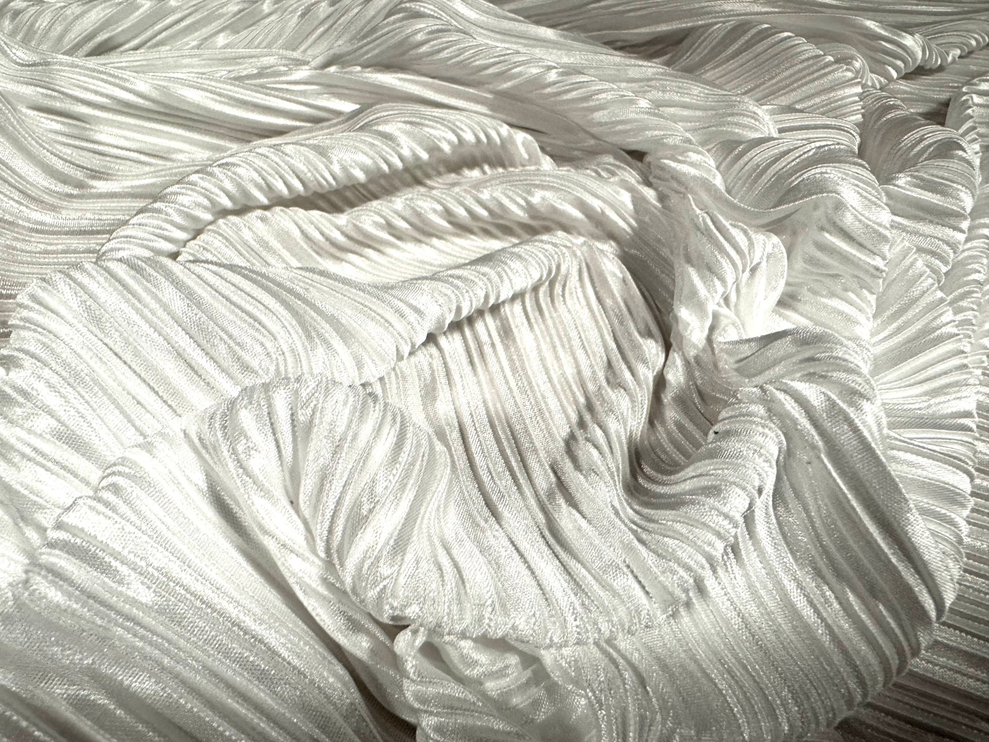Plissé stretch spandex pleated satin dress fabric, per metre - plain - white