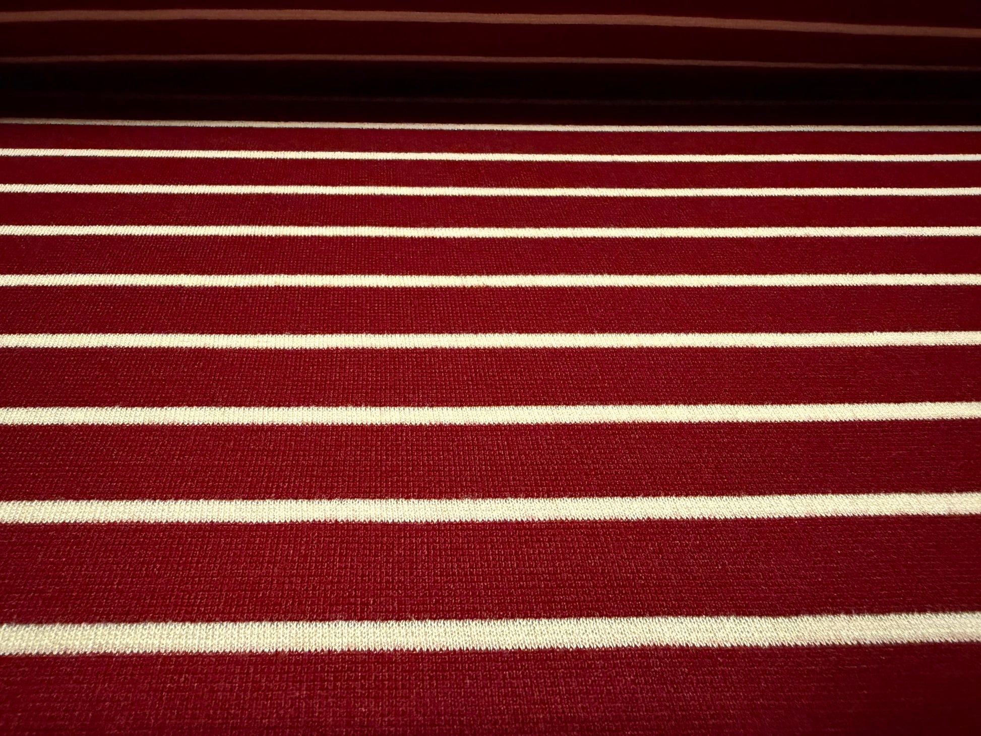 Ponte Roma double jersey knit stretch fabric, per metre - stripe - burgundy & ivory