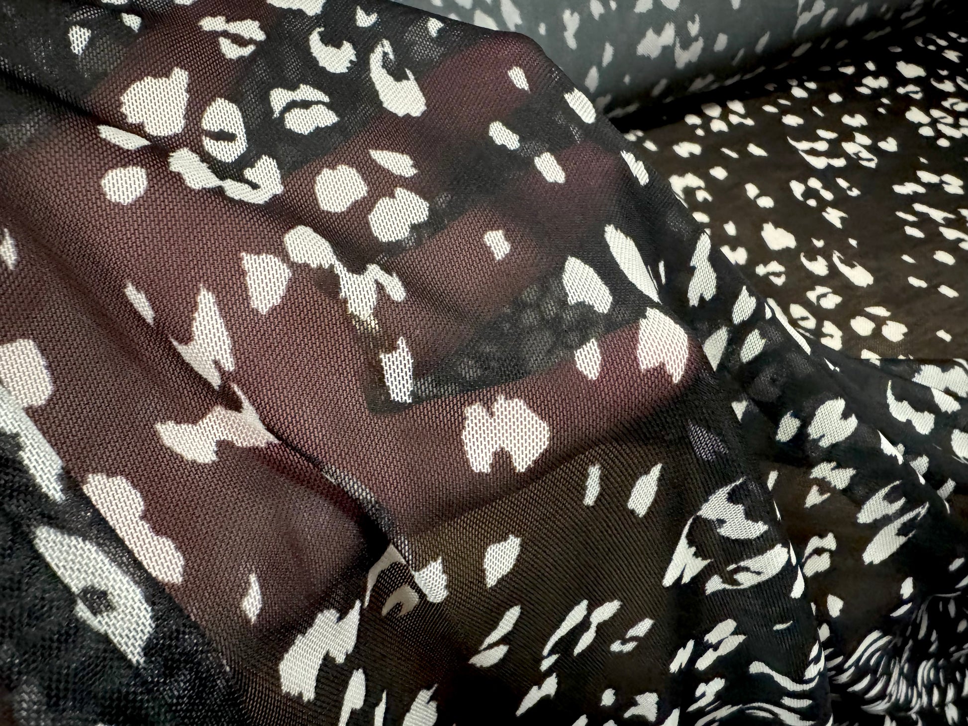 Power mesh net stretch spandex fabric, per metre - animal print - black & white