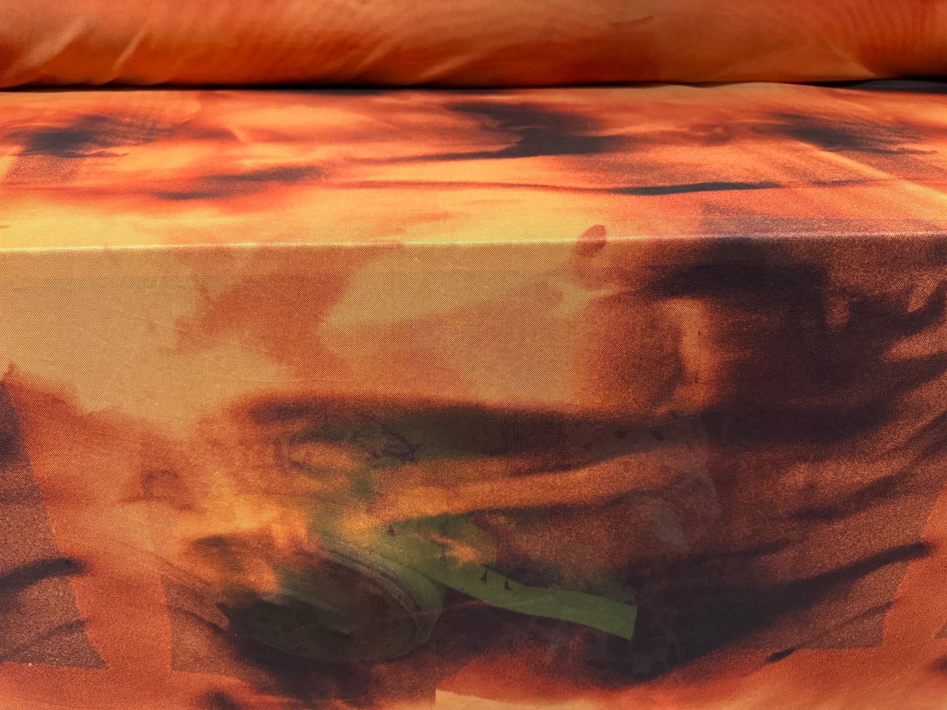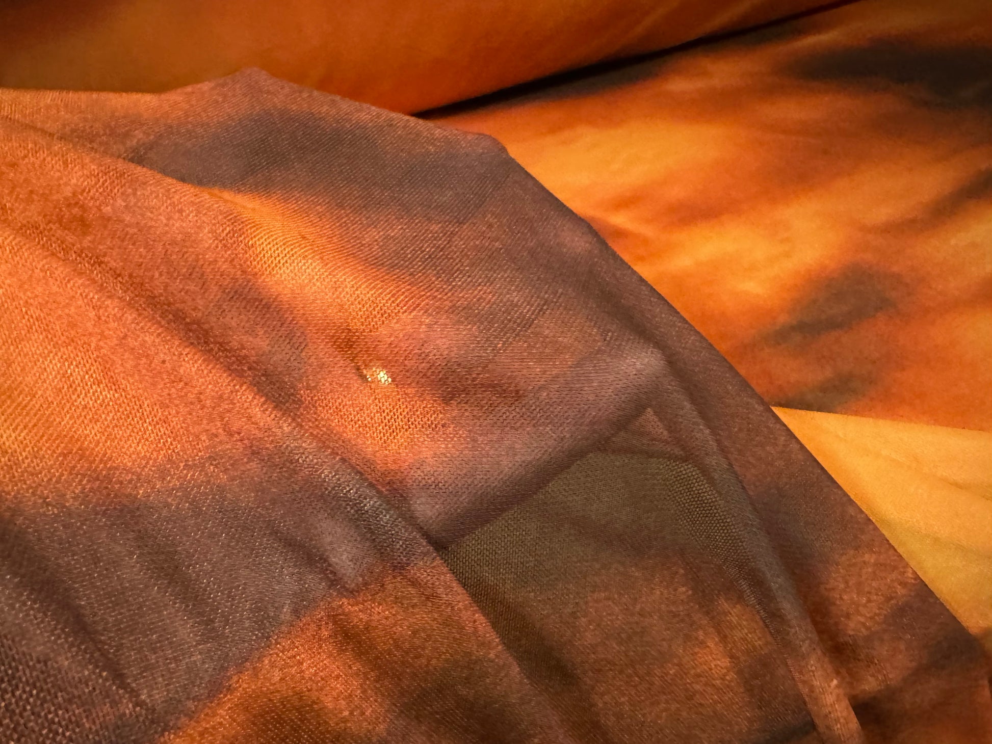 Power mesh net stretch spandex fabric, per metre - sunset shadows print - orange