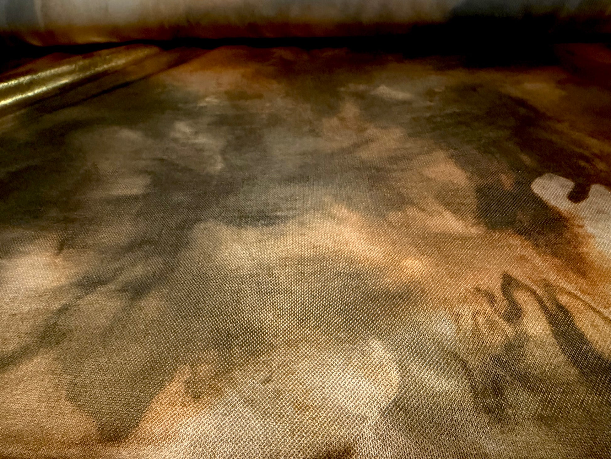 Metallic power mesh net stretch spandex fabric, per metre - abstract print - bronze & gold