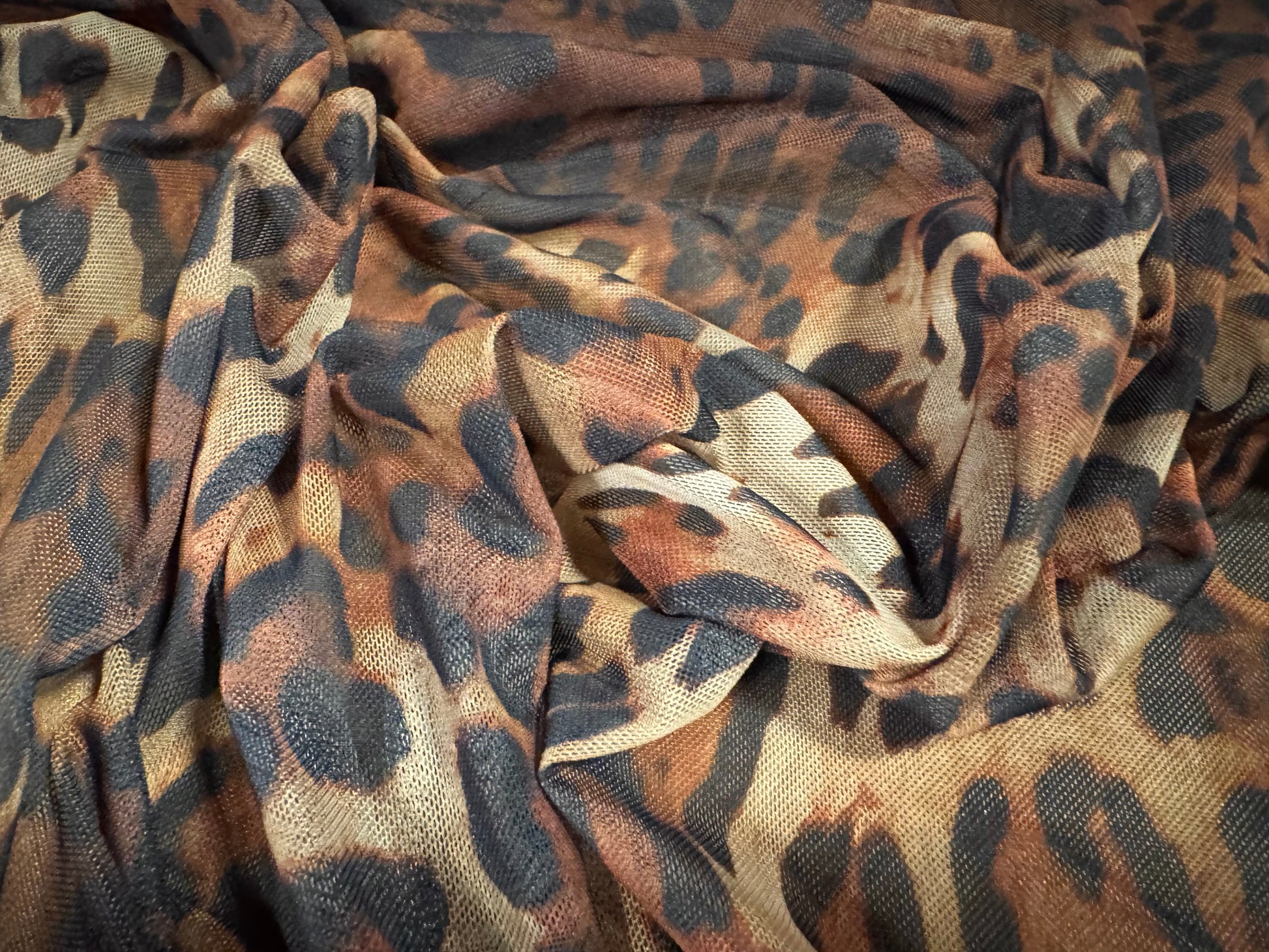 Power mesh net stretch spandex fabric, per metre - leopard animal print - brown