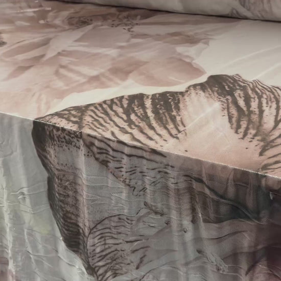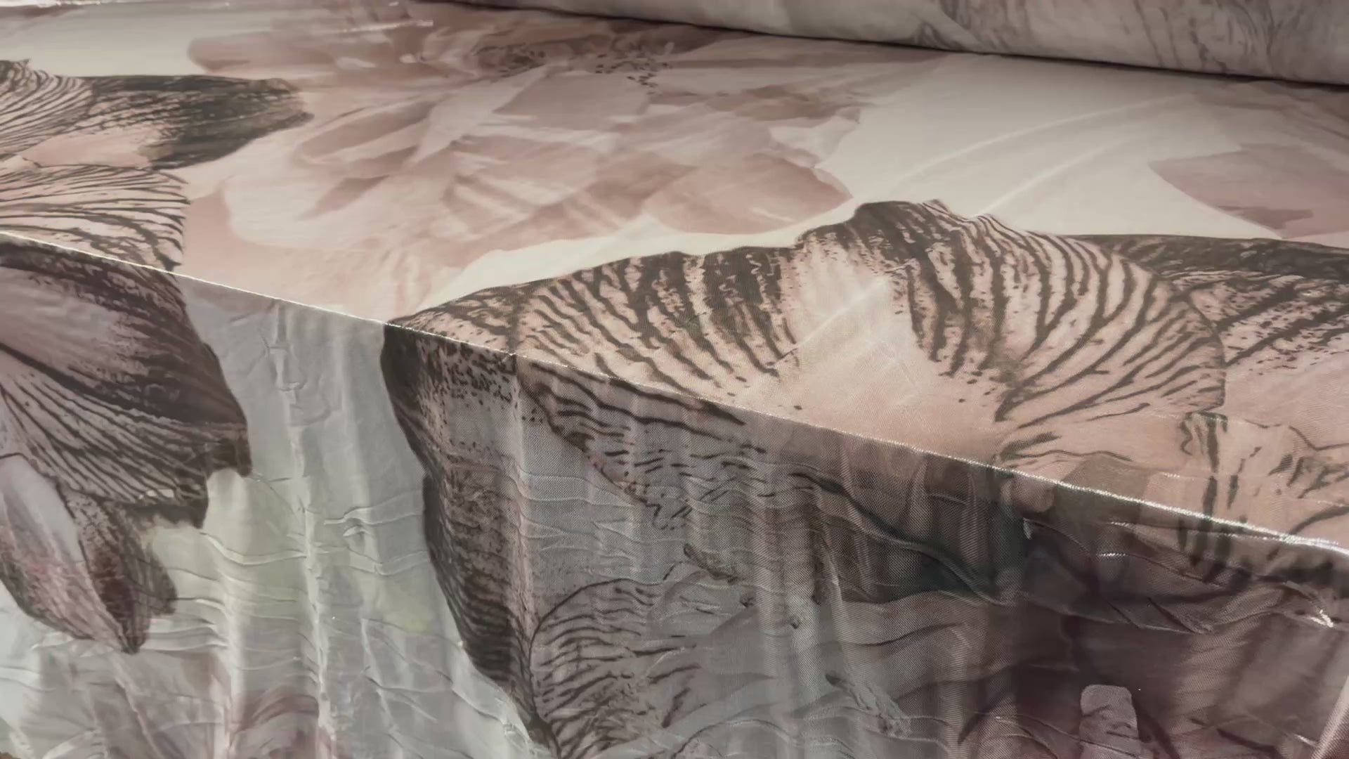Power mesh net stretch spandex fabric, per metre - jumbo floral print - silver & dusky pink
