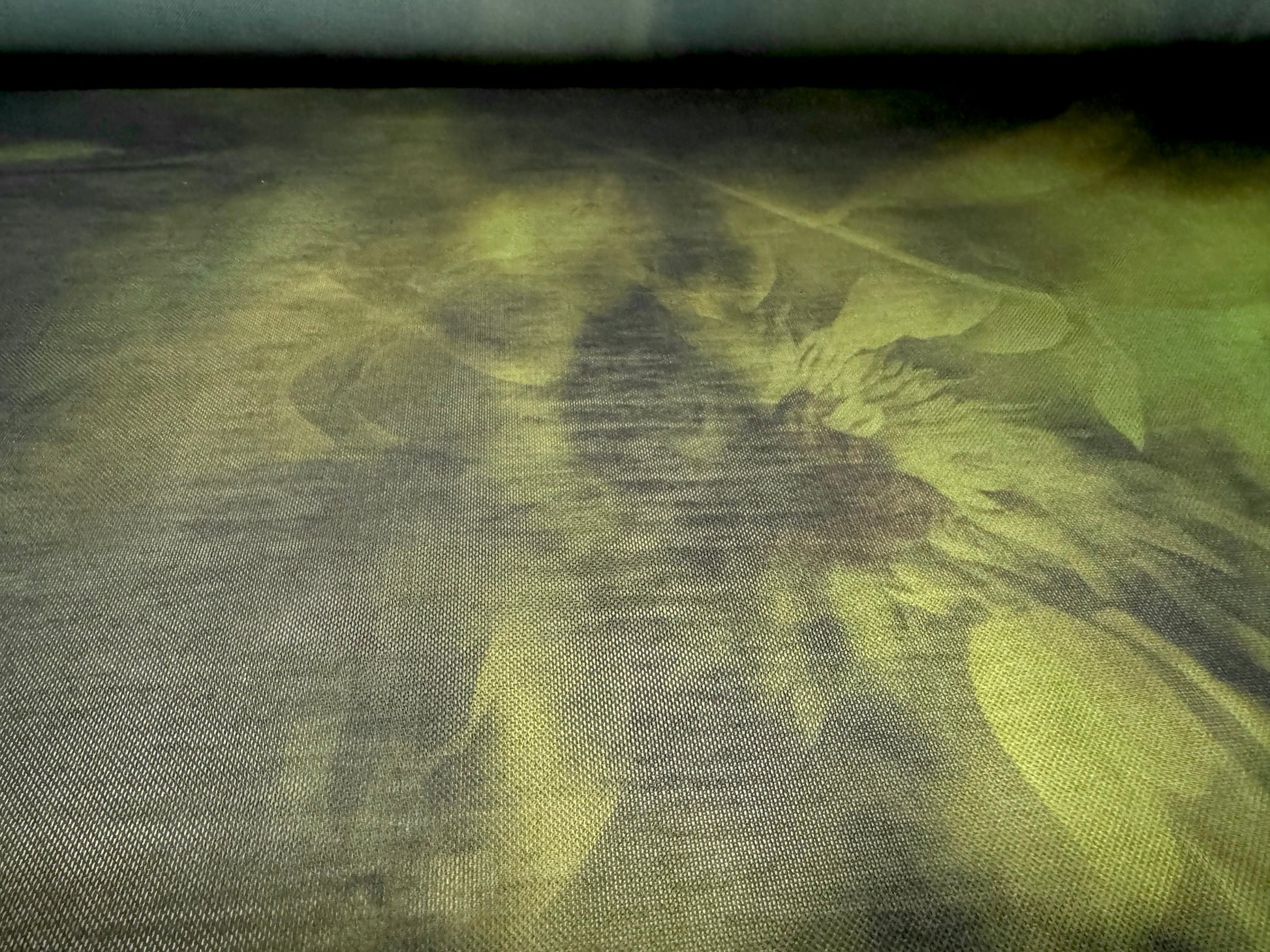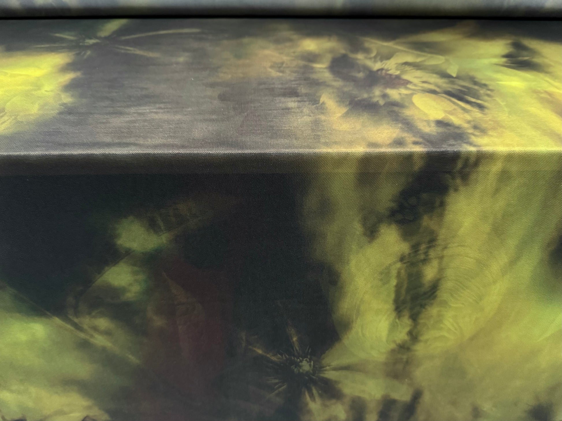 Power mesh net stretch spandex fabric, per metre - stylised sunflower print - black & green