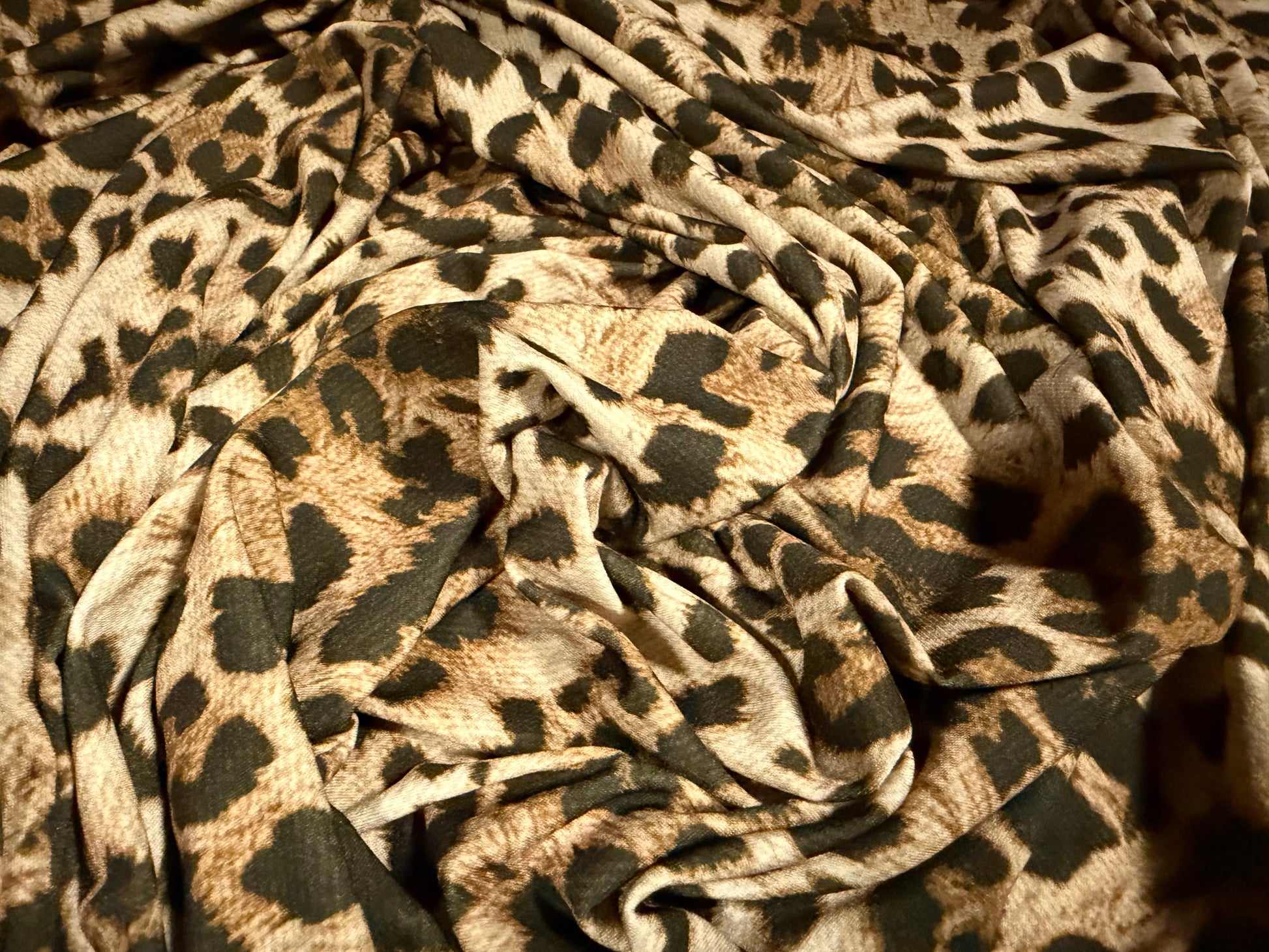 Soft touch stretch spandex single jersey fabric, per metre - animal fur print - brown