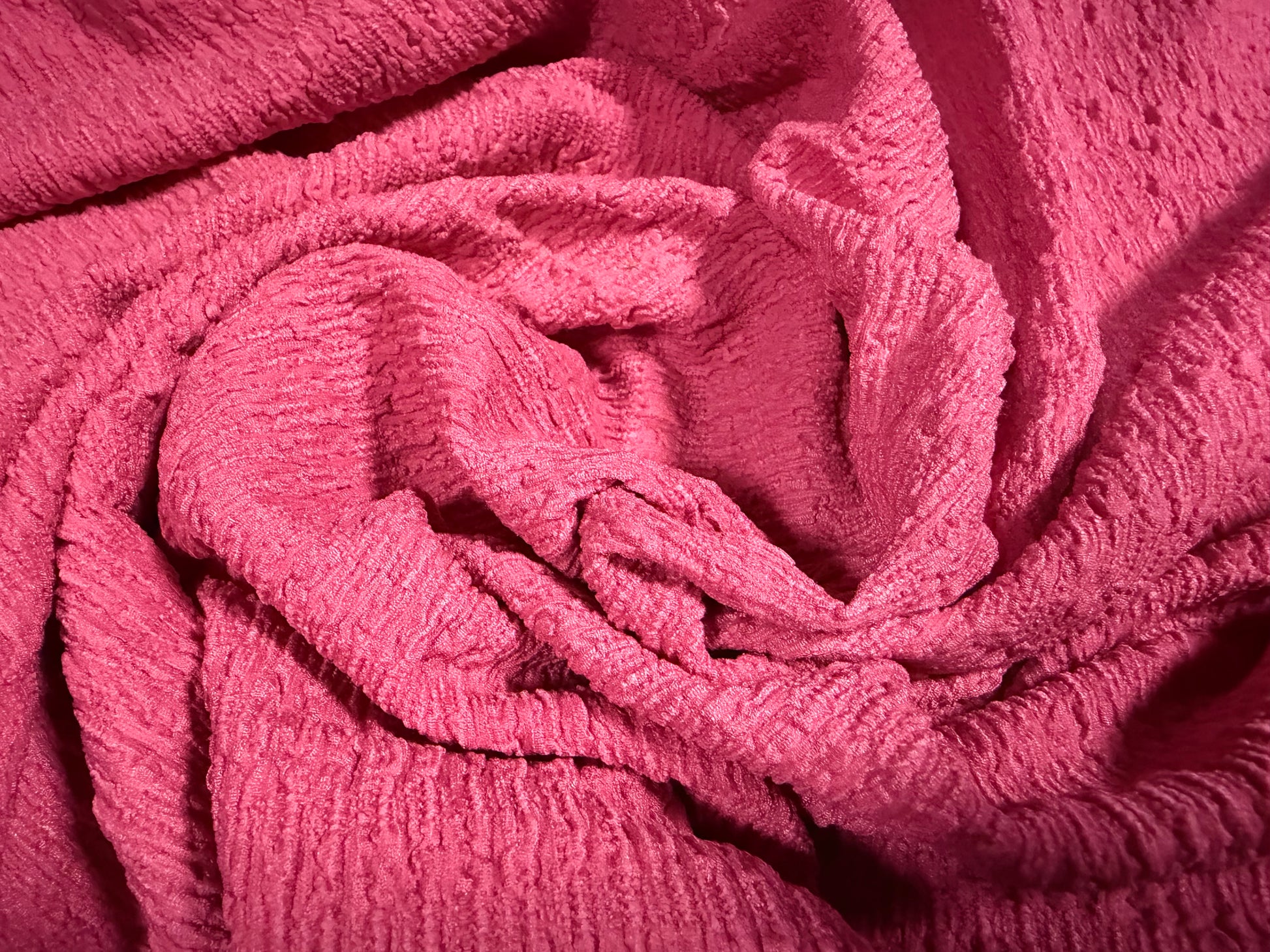 Stretch crepe woven fashion fabric, per metre - seersucker stripe - hot pink