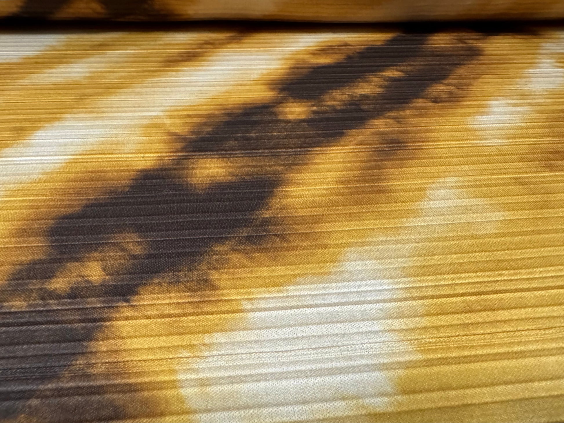 Stretch plissé pleated dress fabric, per metre - diagonal ombré print - gold & cream