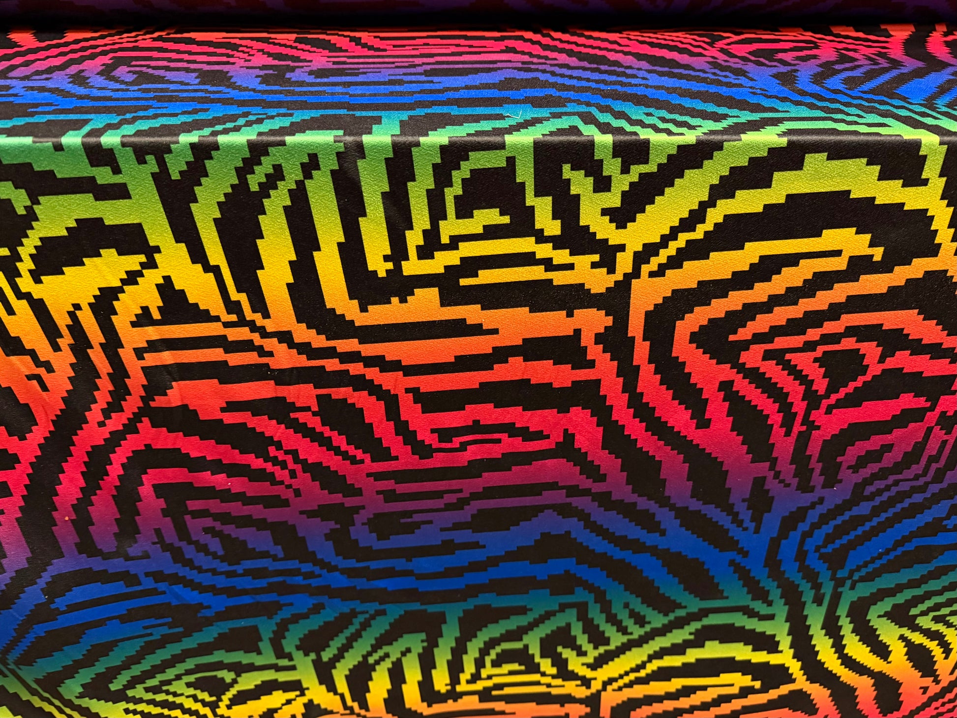 Stretch spandex crepe single jersey dress fabric, per metre - rainbow animal print - multicolour