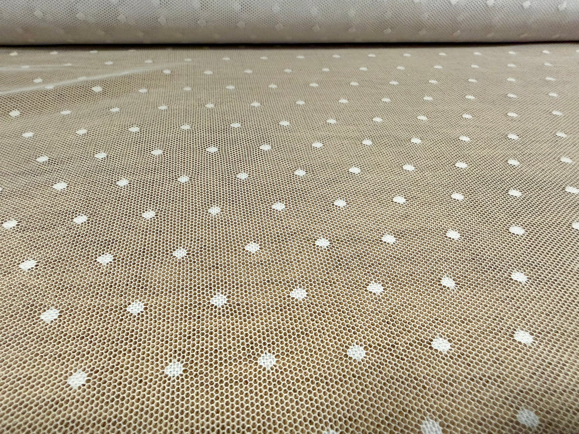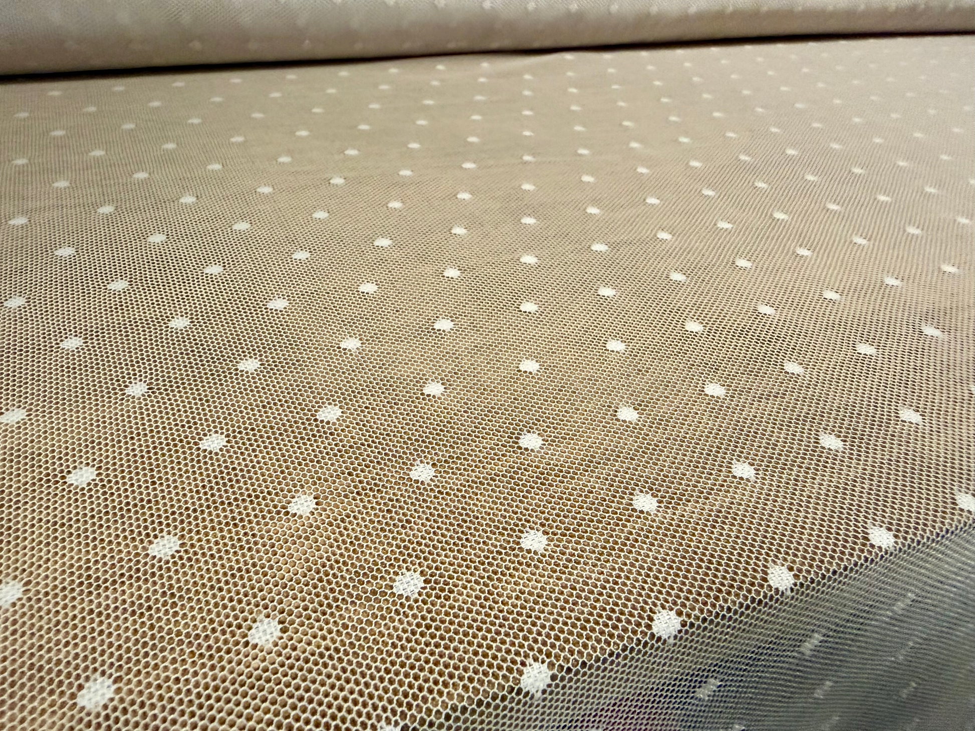 Stretch spandex mesh net fabric, per metre - spotted - white on white