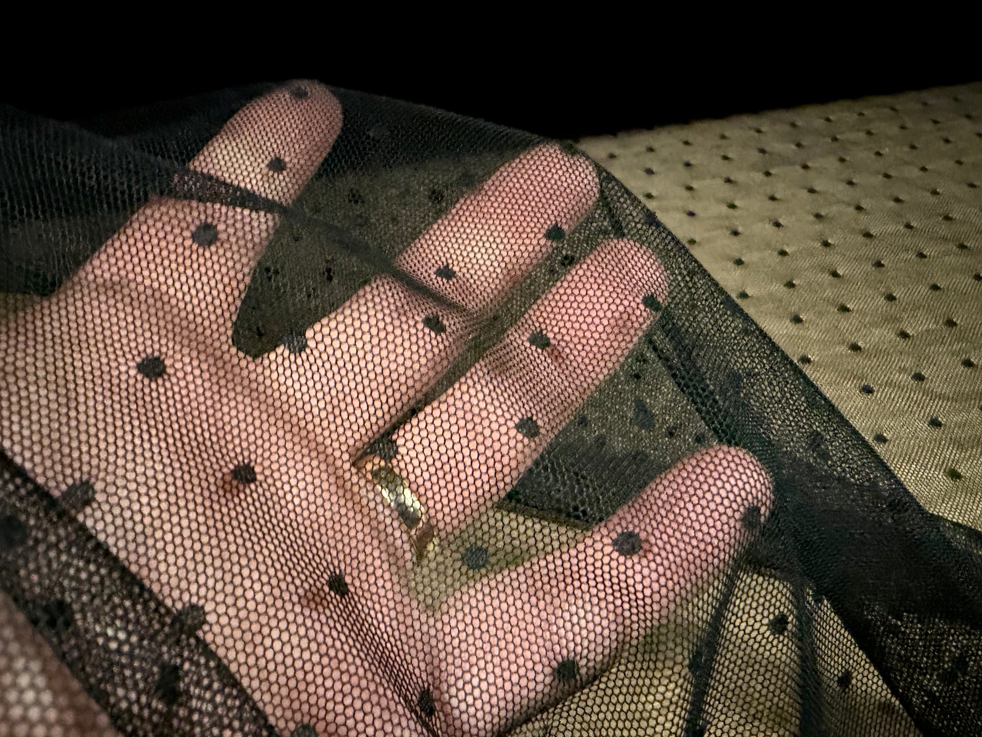 Stretch spandex mesh net fabric, per metre - spotted - black on black