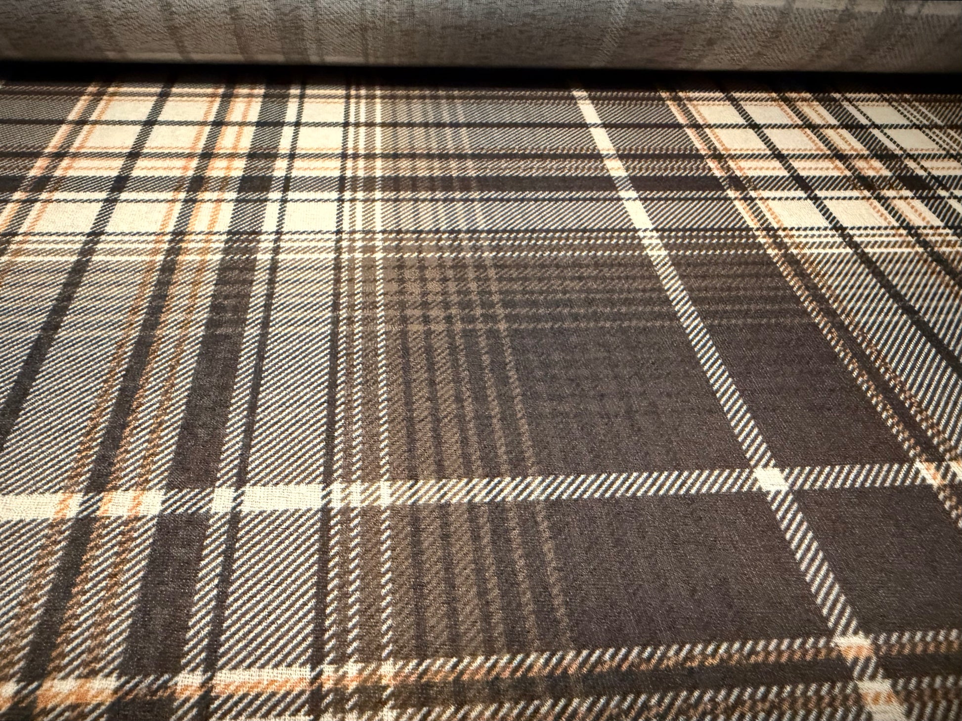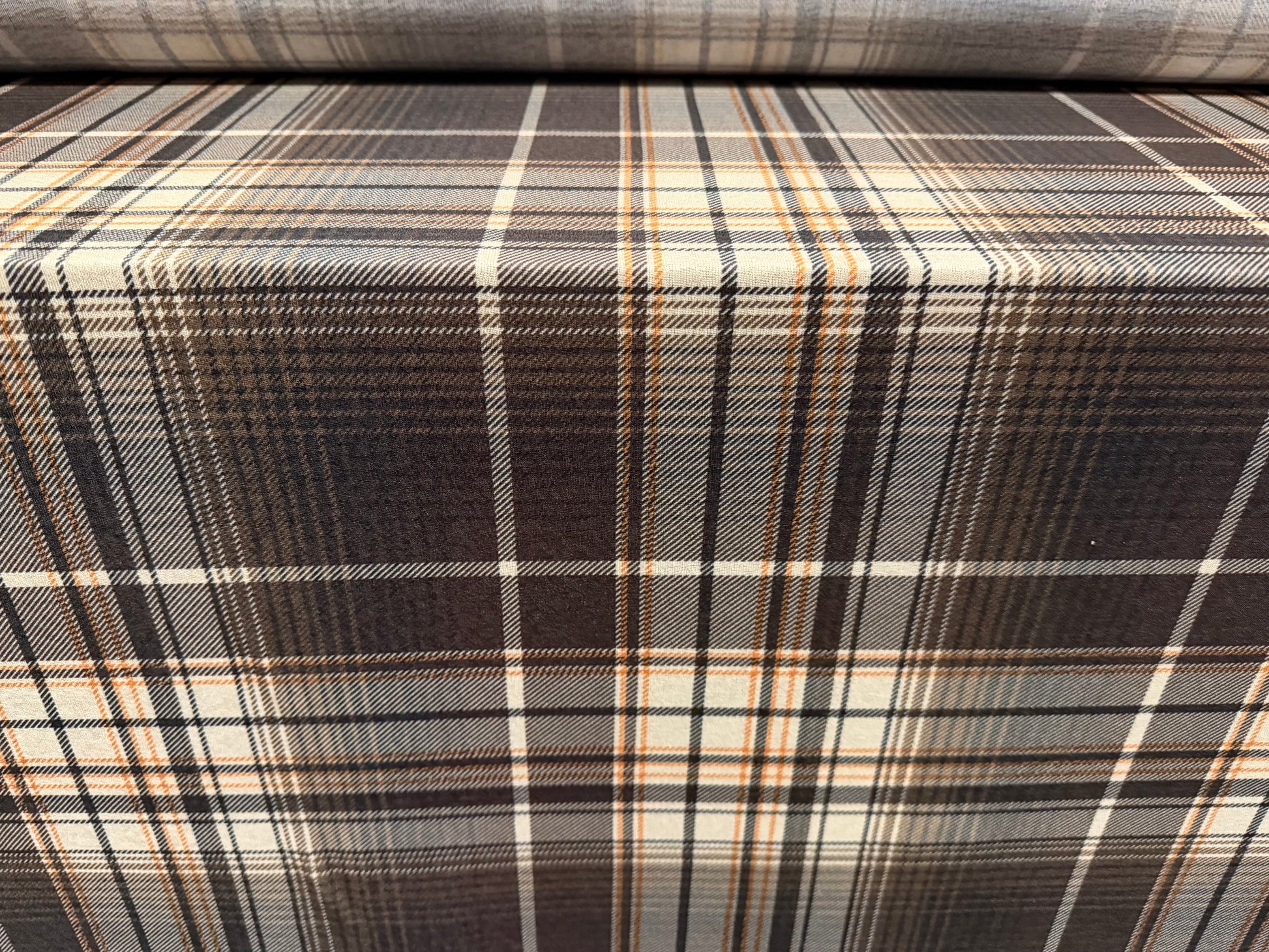 Thick & thin stretch spandex single jersey fashion fabric, per metre - tartan print - brown & cream