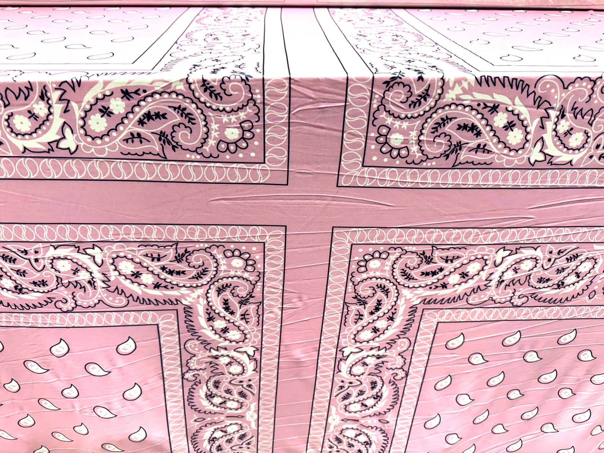 Soft touch Spandex stretch jersey fabric, per metre - square paisley panels print - pink