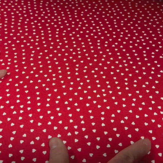 Viscose spandex stretch single jersey fabric, per metre - love hearts print - red & white
