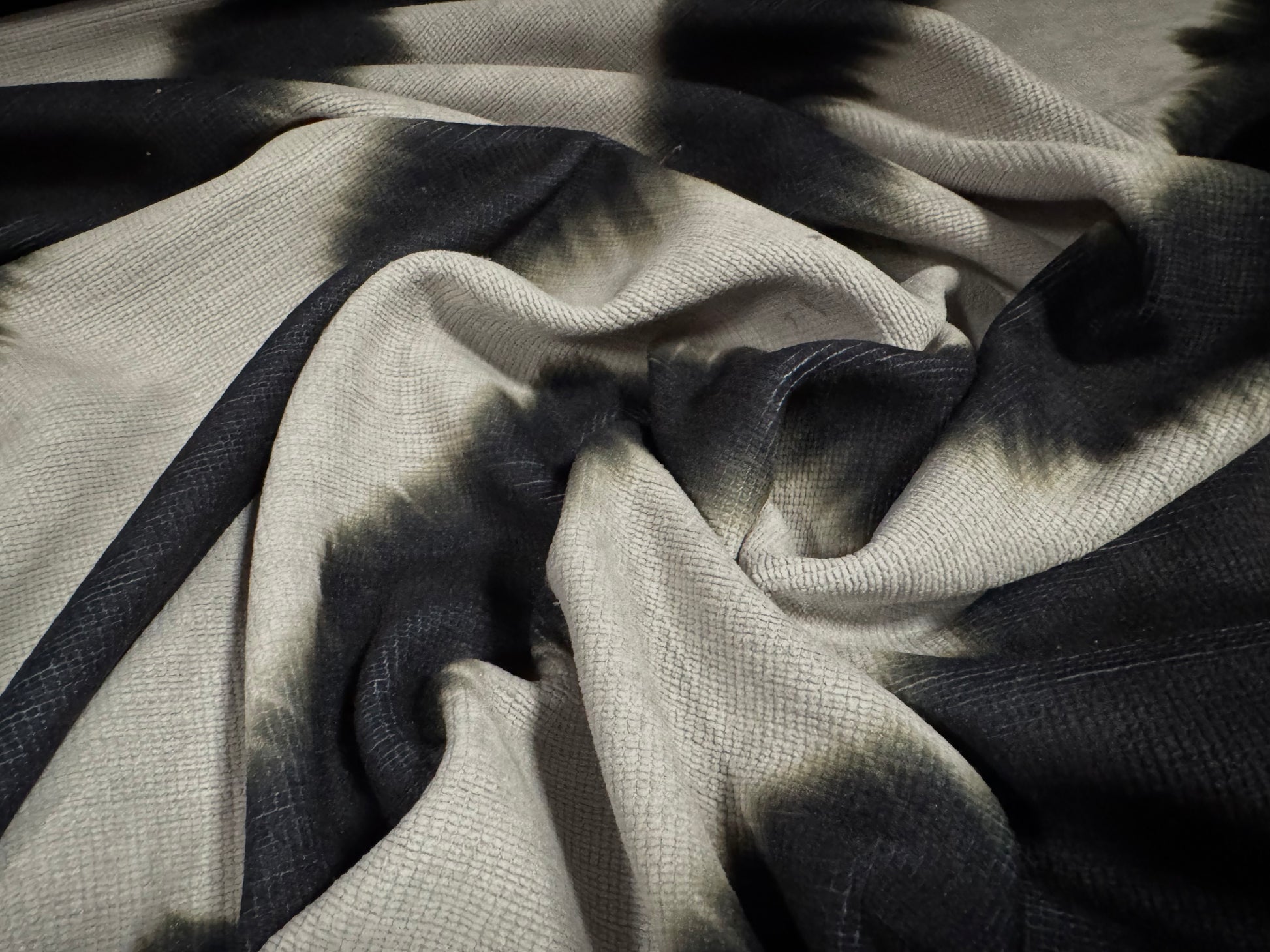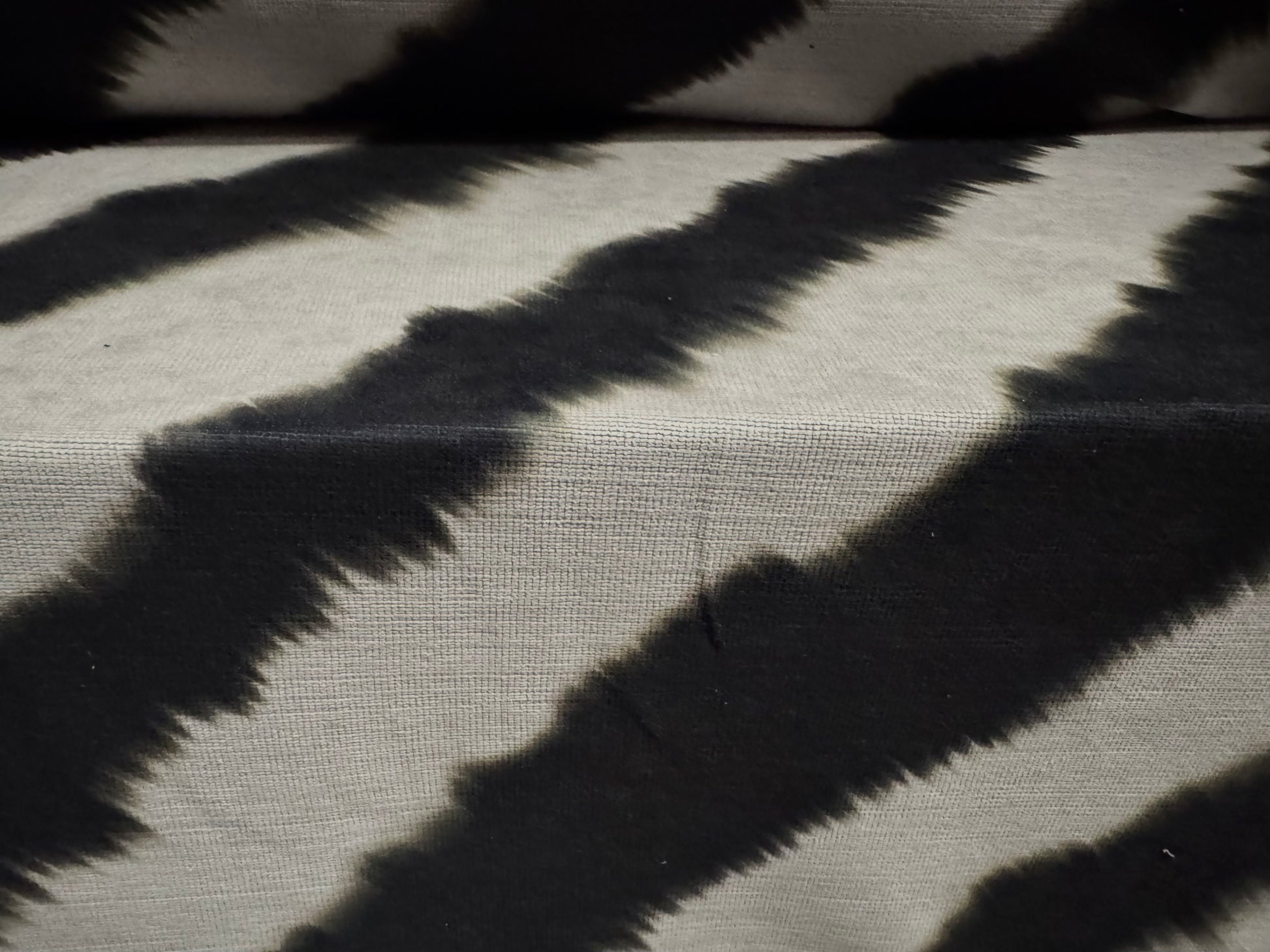 Chenille upholstery fabric, per metre - diagonal smudge stripe print - grey