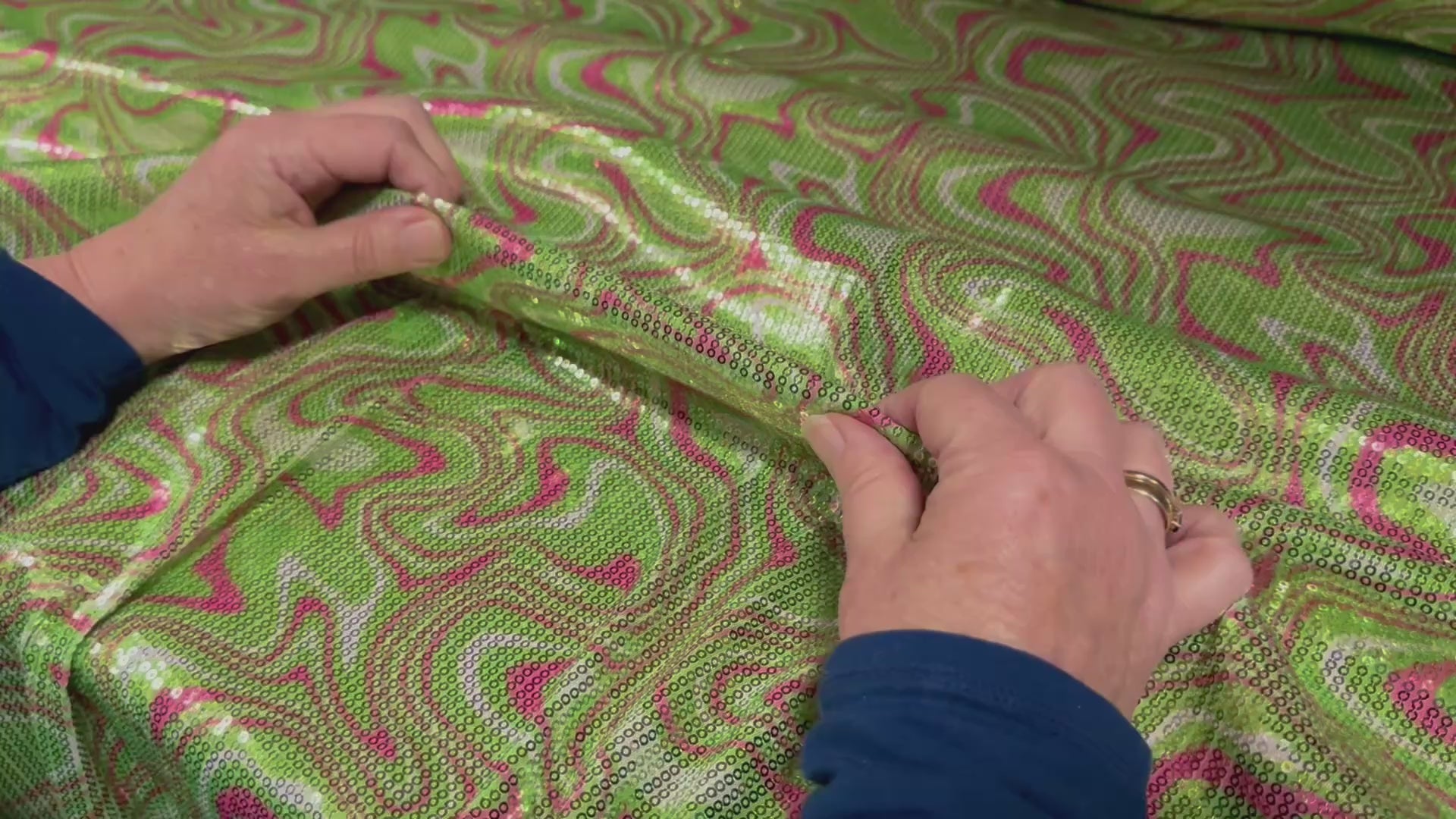 Couture dress fabric with all over sequinned design. Hand wash only. Width 135 cms. Base cloth 100% polyester.