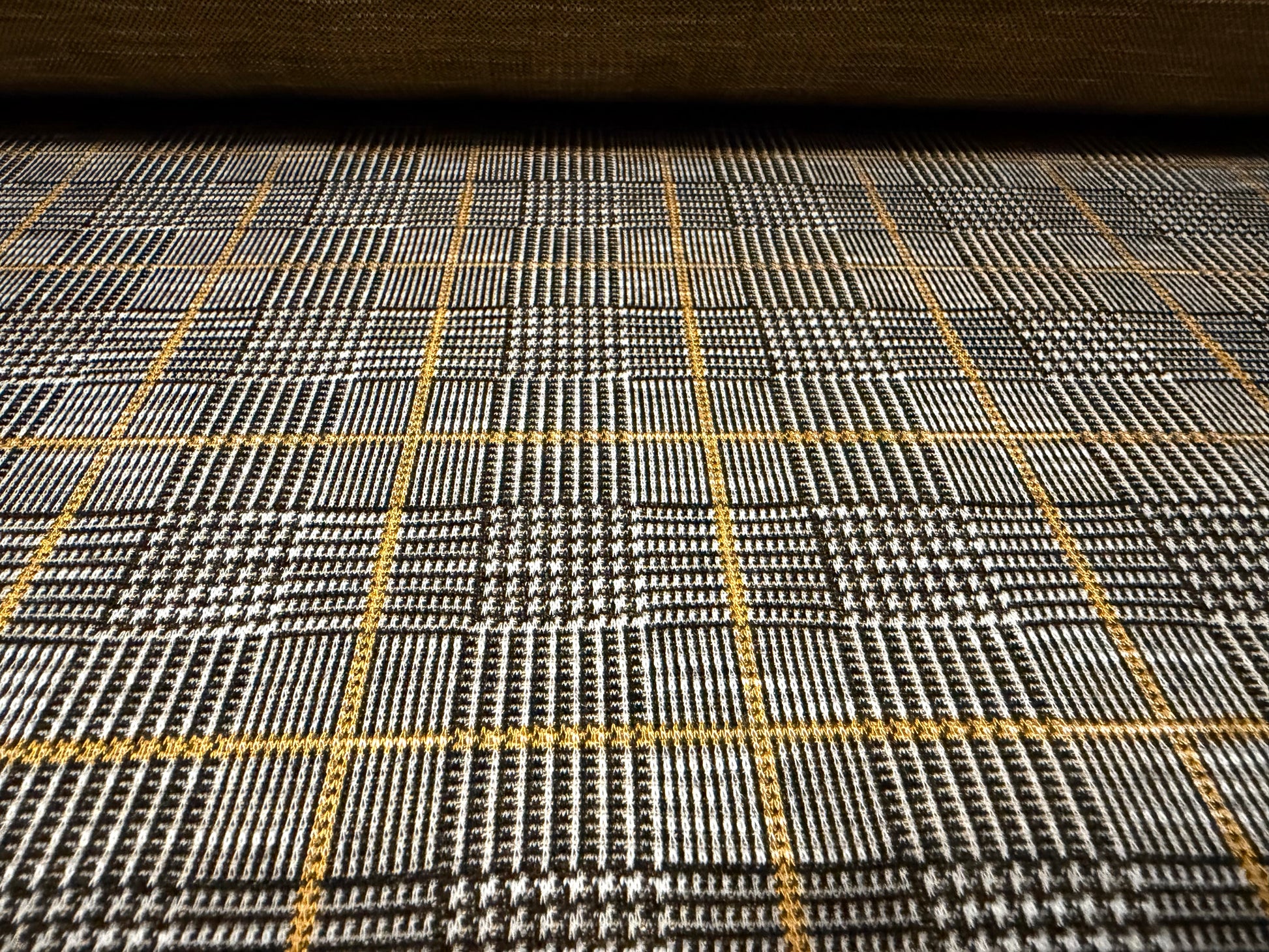 Double jersey fashion fabric, per metre - check jacquard - grey & mustard