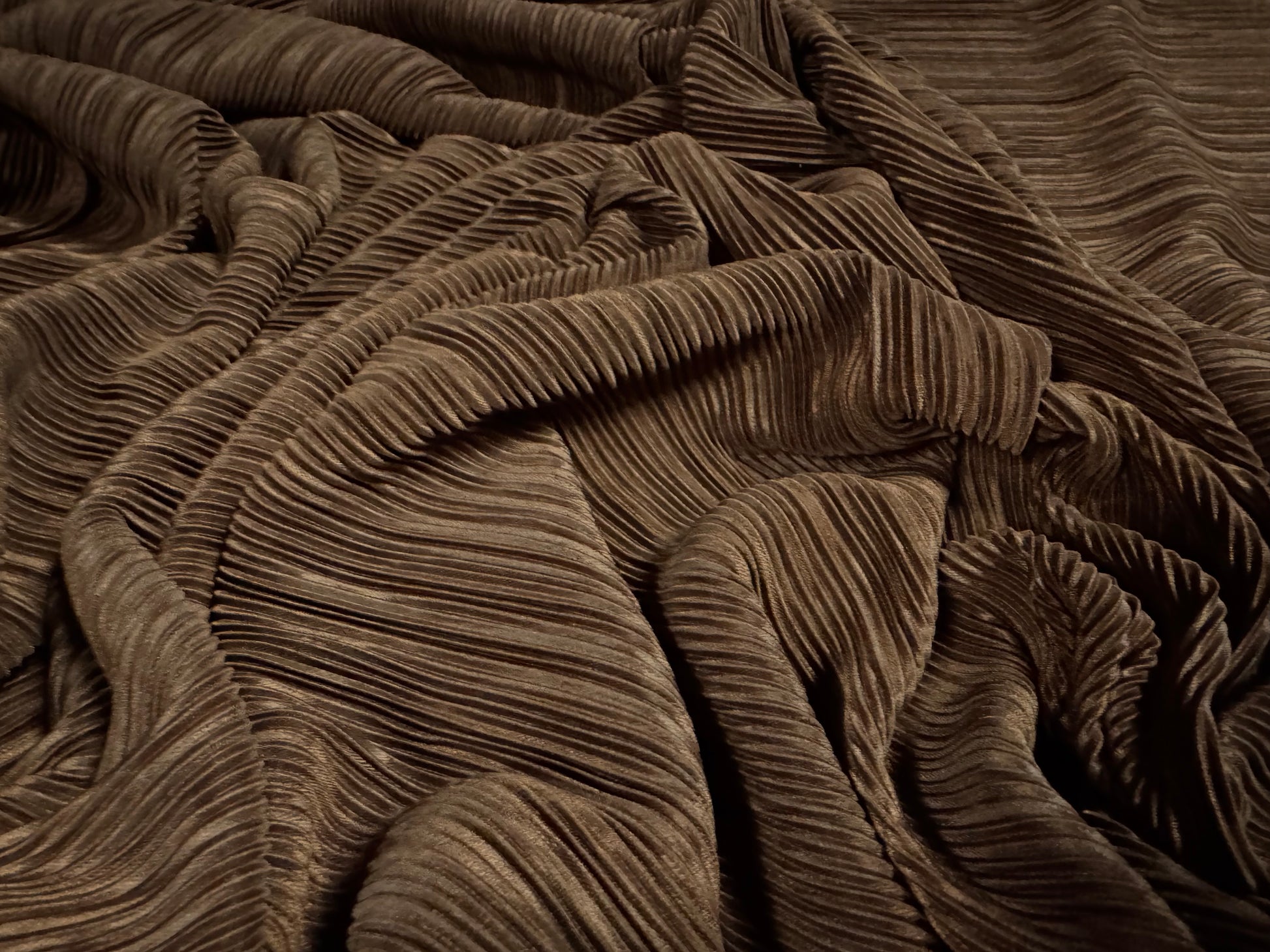 Fine Plissé pleated satin dress fabric, per metre - plain - brown