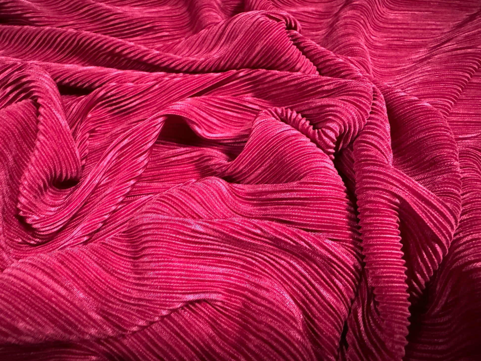 Fine Plissé pleated satin dress fabric, per metre - plain - cerise pink