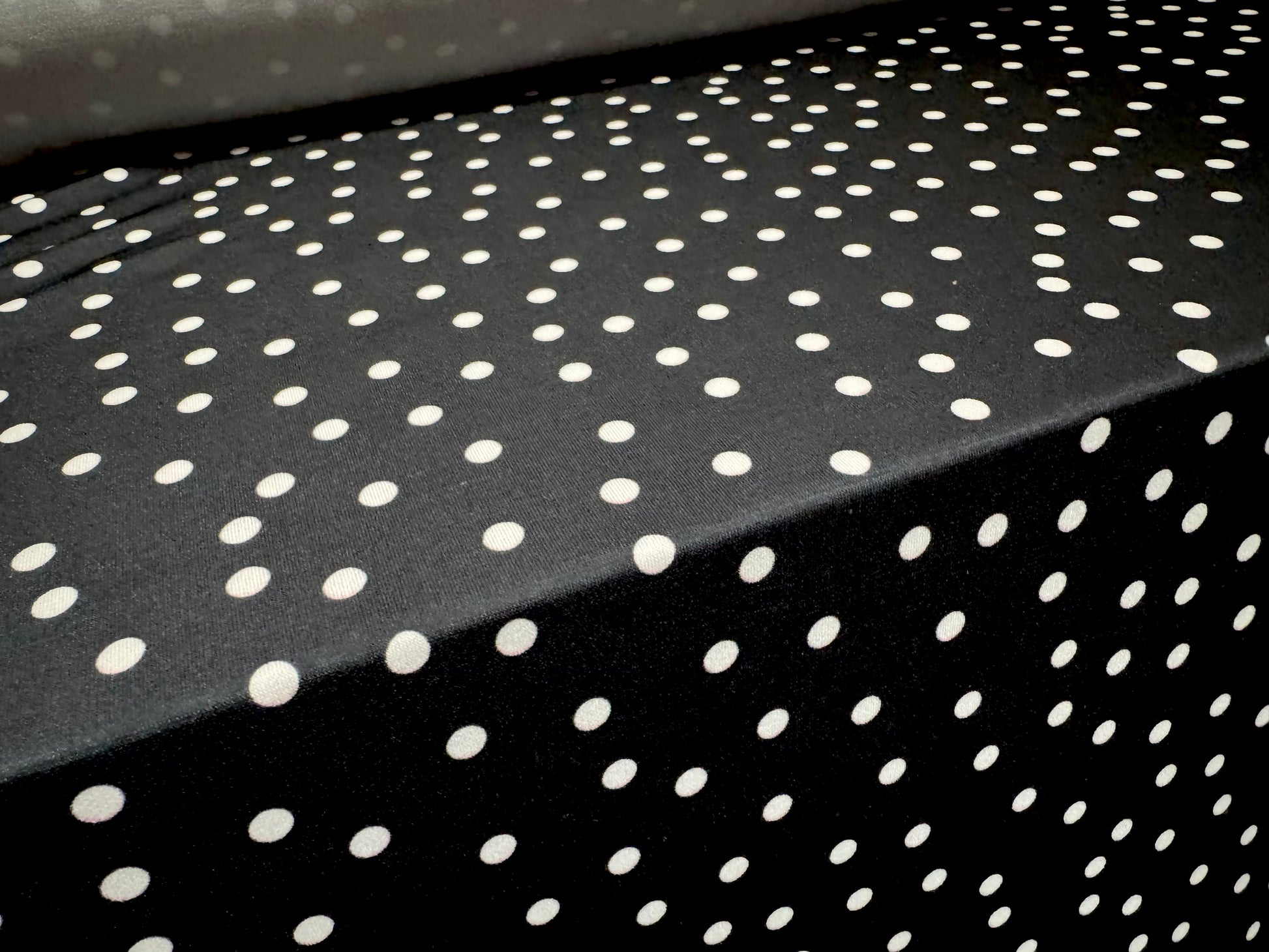 ITY stretch spandex single jersey fabric, per metre - spot print - black & white
