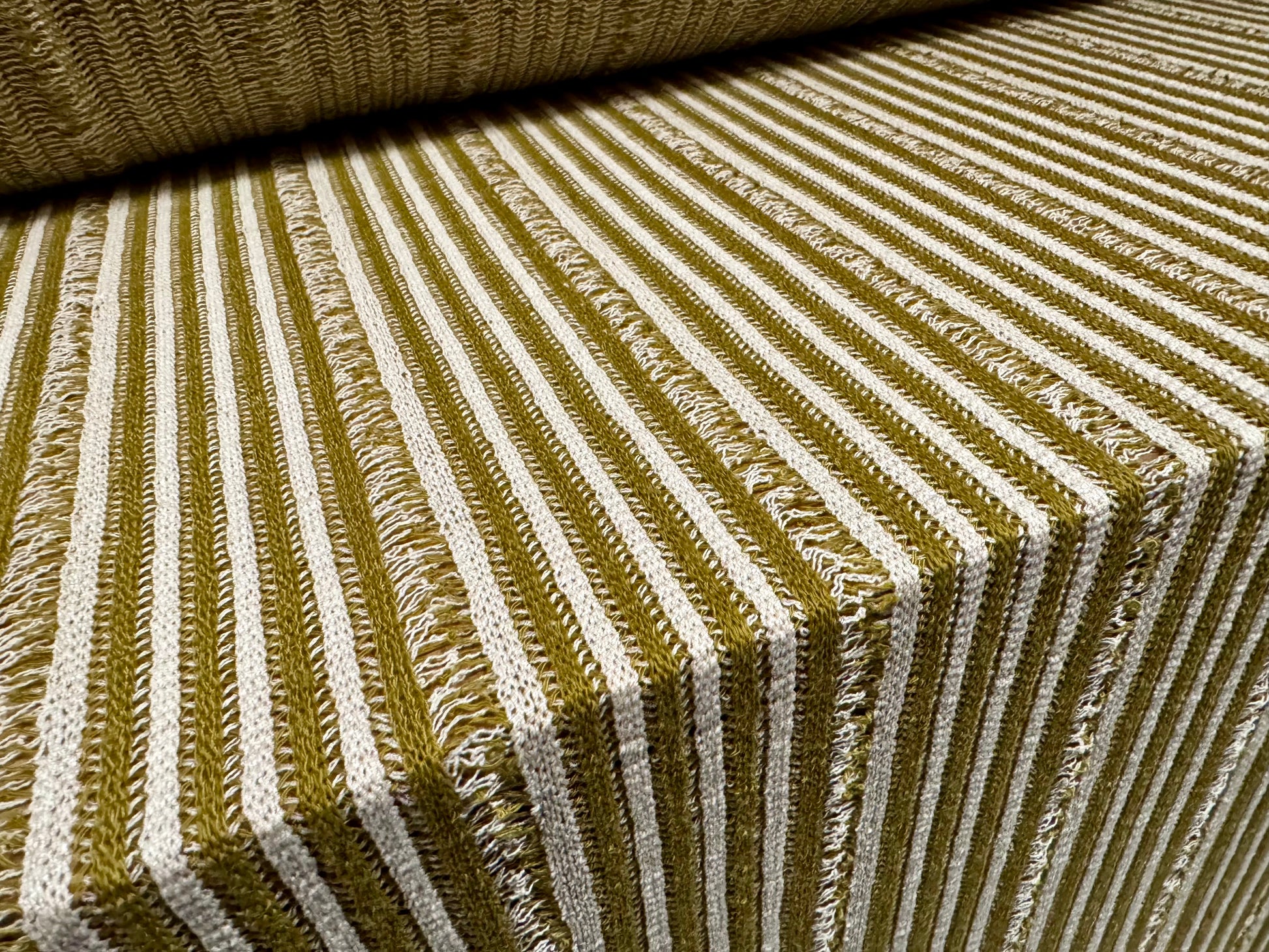 Knitwear jersey fabric, per metre - frayed stripe - olive