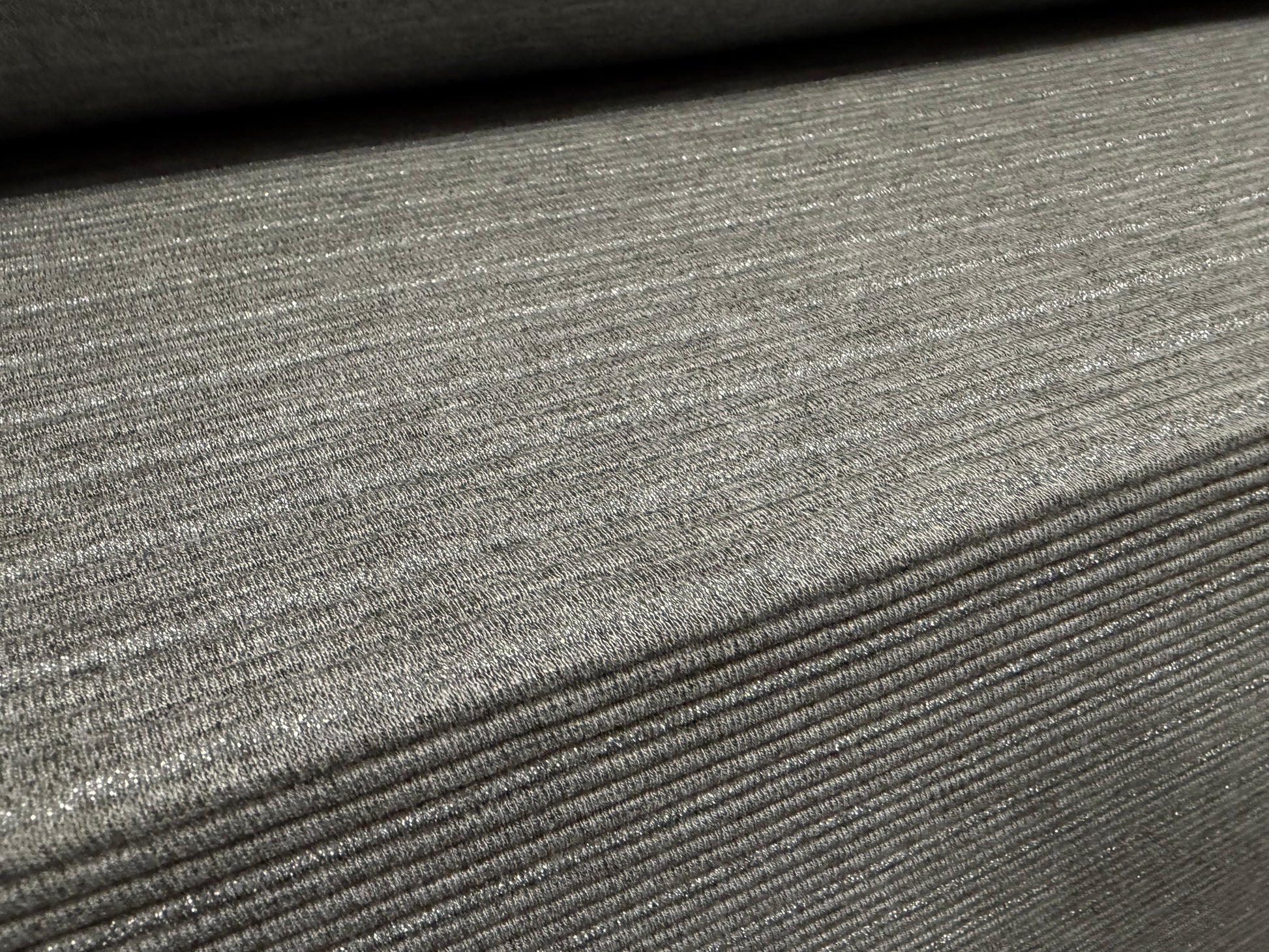 Metallic ottoman rib double jersey fabric, per metre - stripe - grey with silver lurex