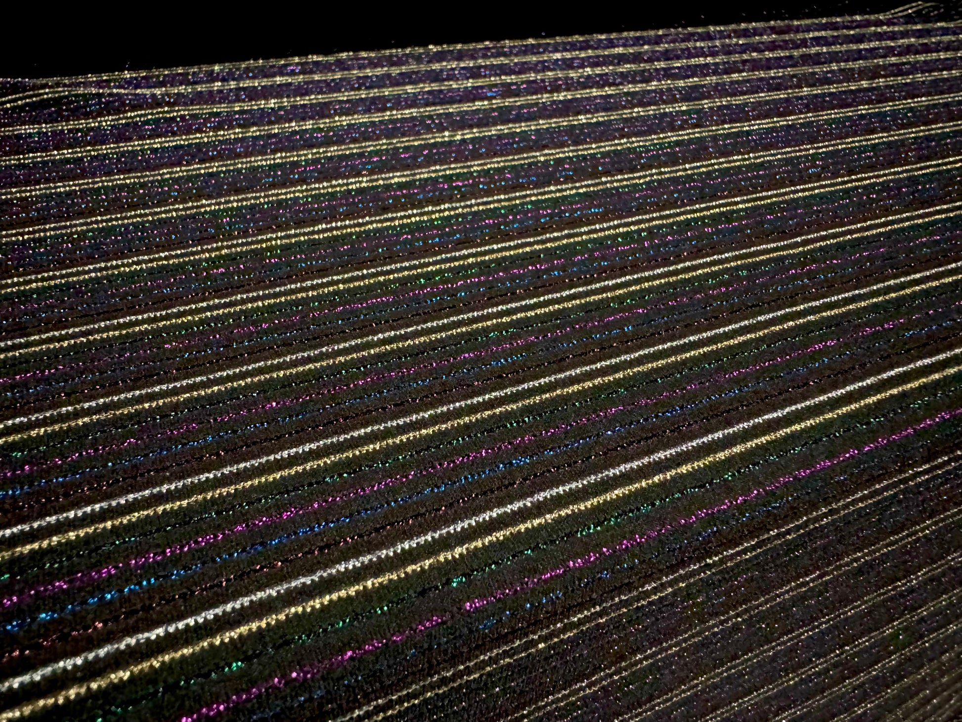 Metallic stretch single jersey fashion fabric, per metre - pinstripe - black with multicolour lurex