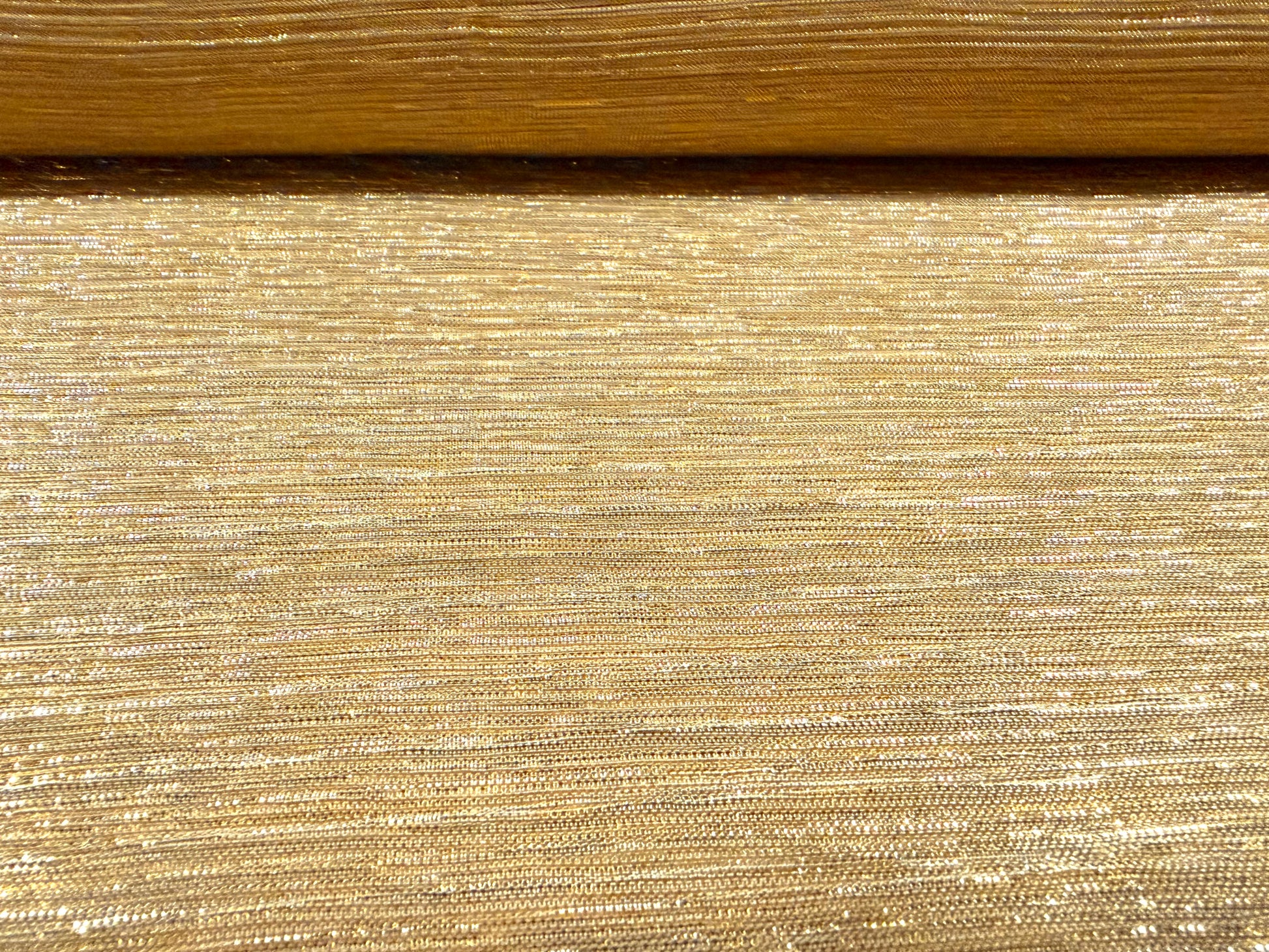 Moonlight shimmer metallic stretch plissé mesh fabric, per metre - gold