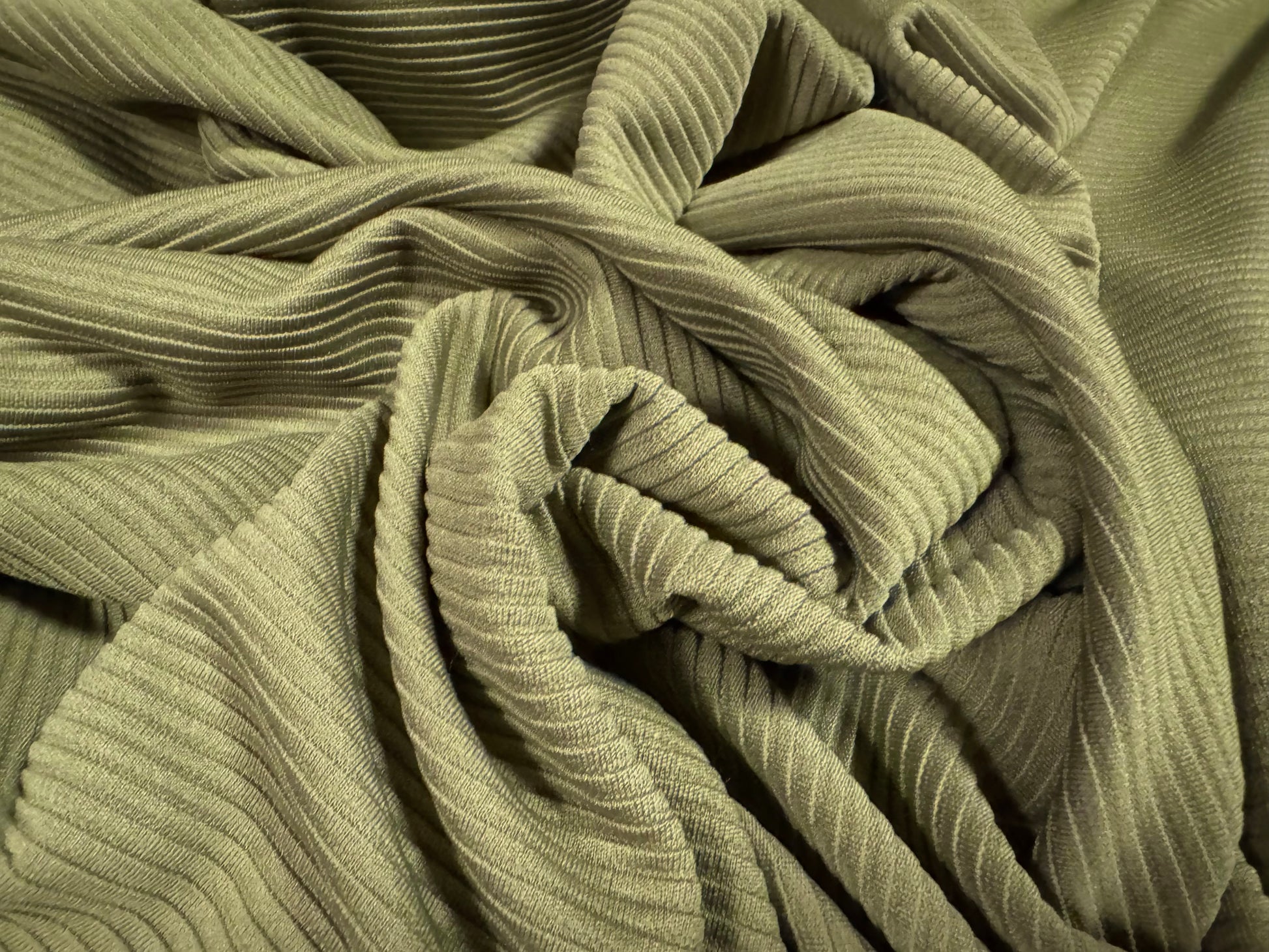 Ottoman Rib Stretch Double jersey fabric , per metre - plain - khaki green