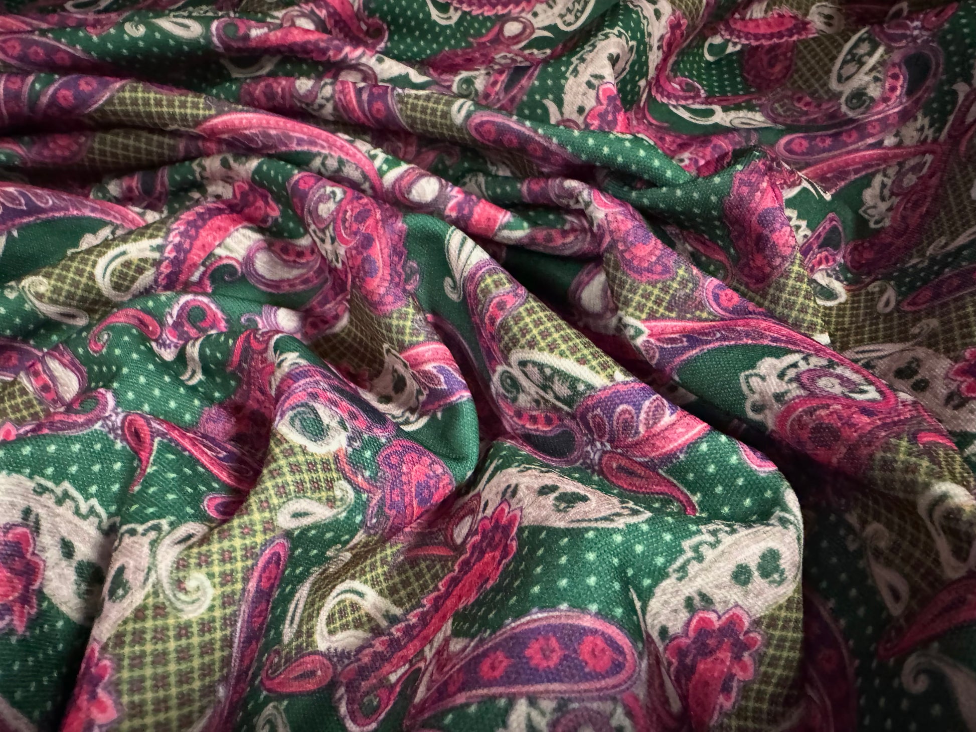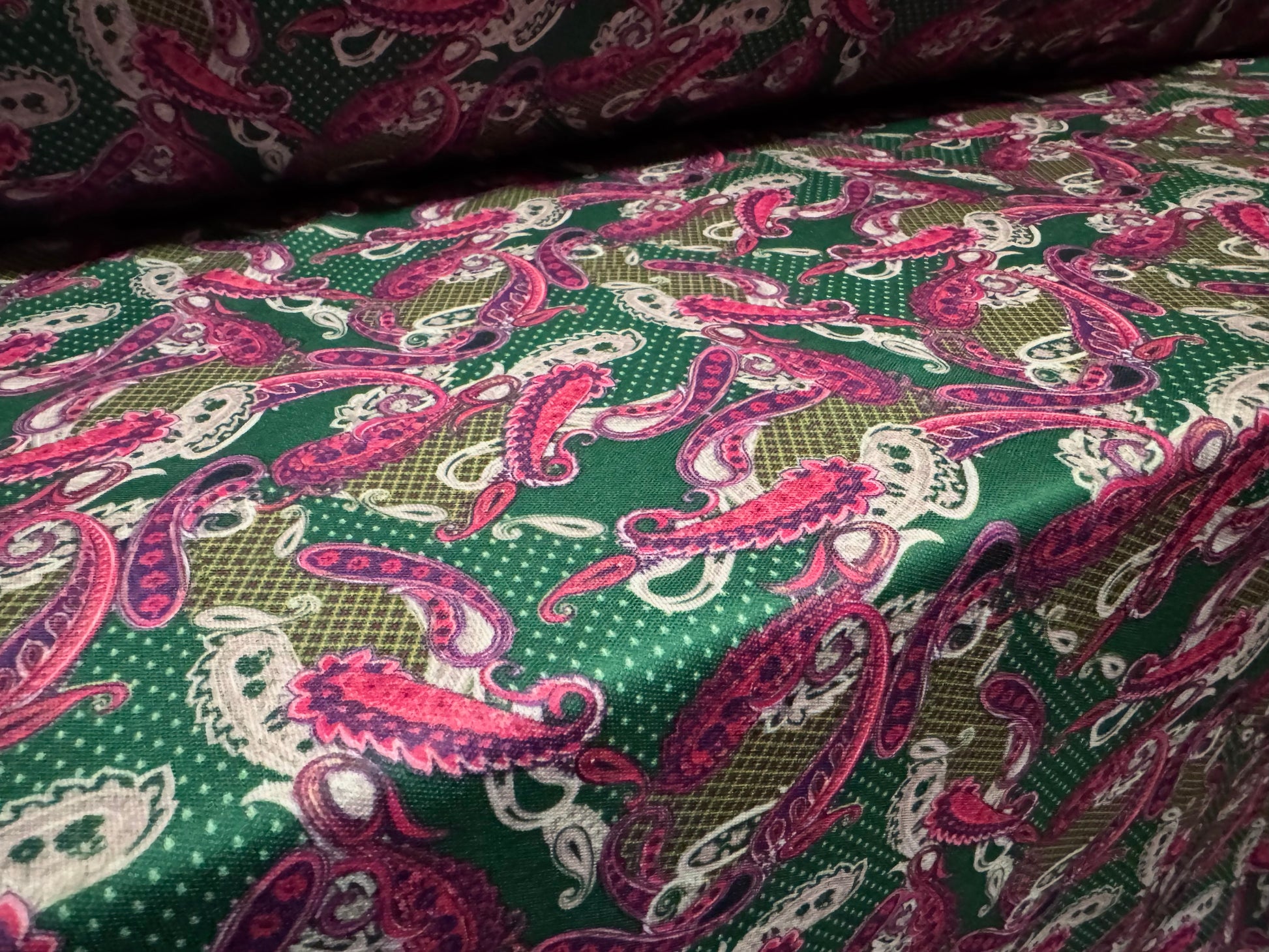Piqué double jersey fabric, per metre - paisley print - magenta & emerald