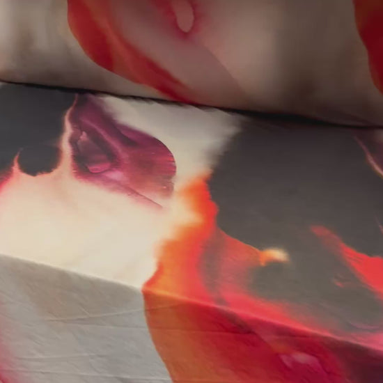 Power mesh net stretch spandex fabric, per metre - abstract print - cream black & orange