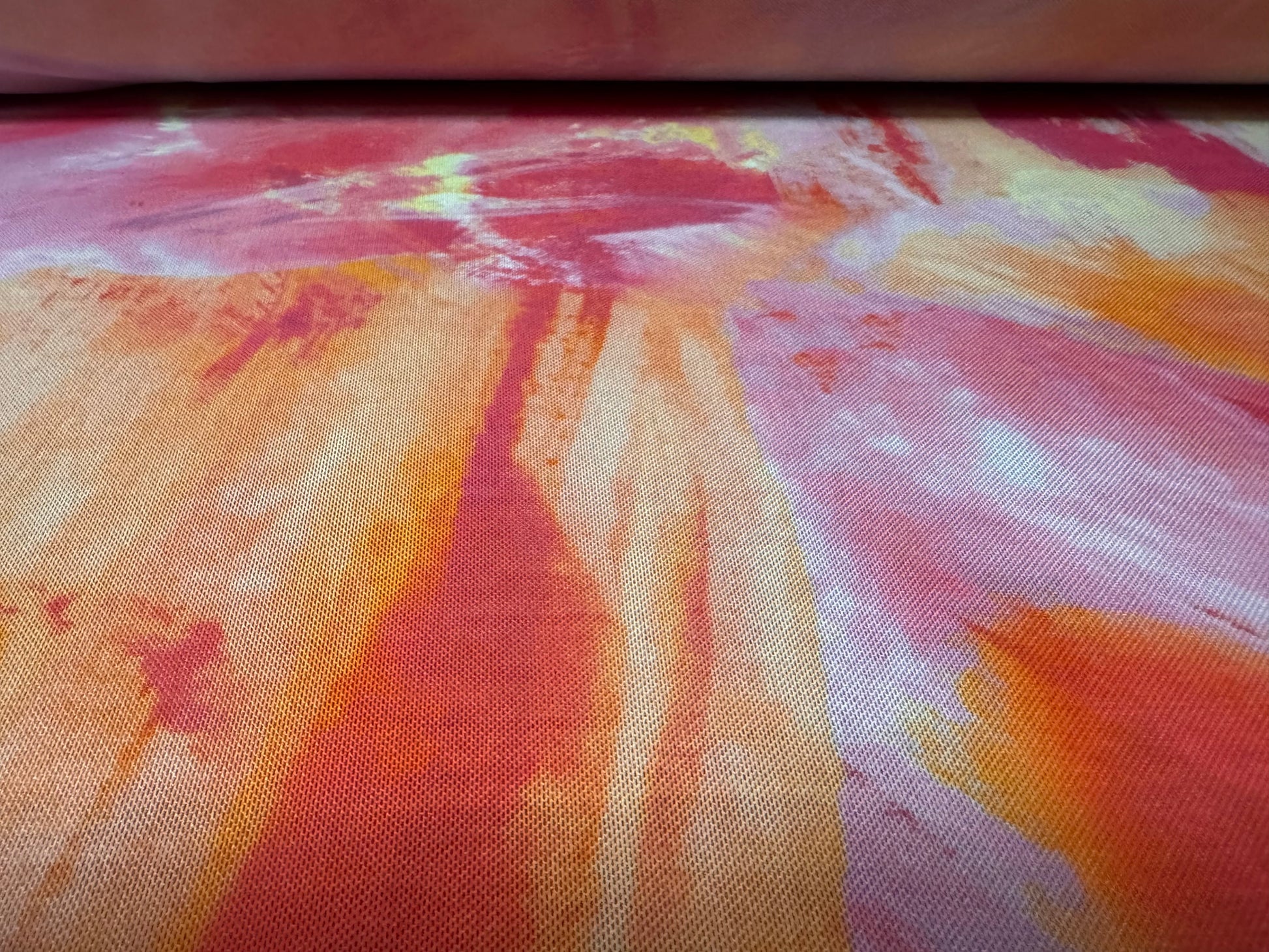 Power mesh net stretch spandex fabric, per metre - abstract print - raspberry ripple