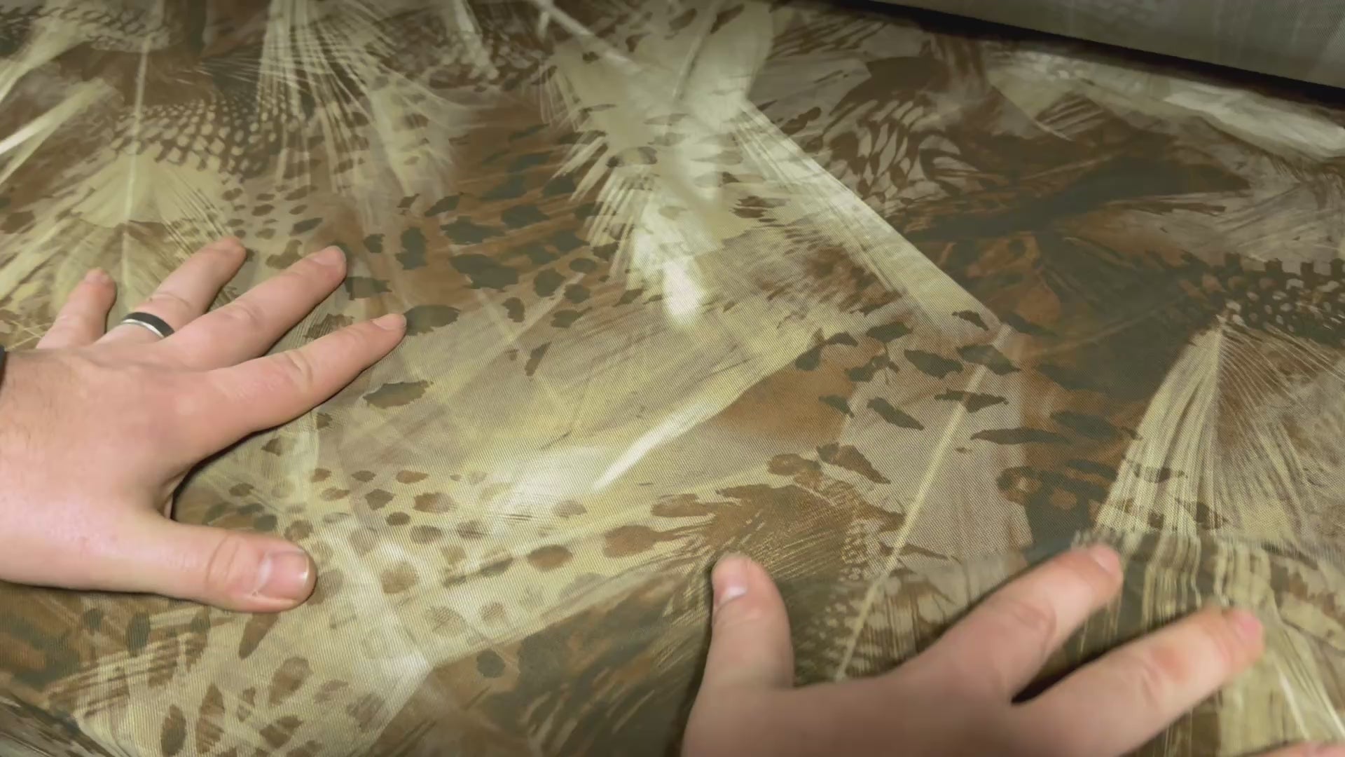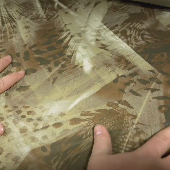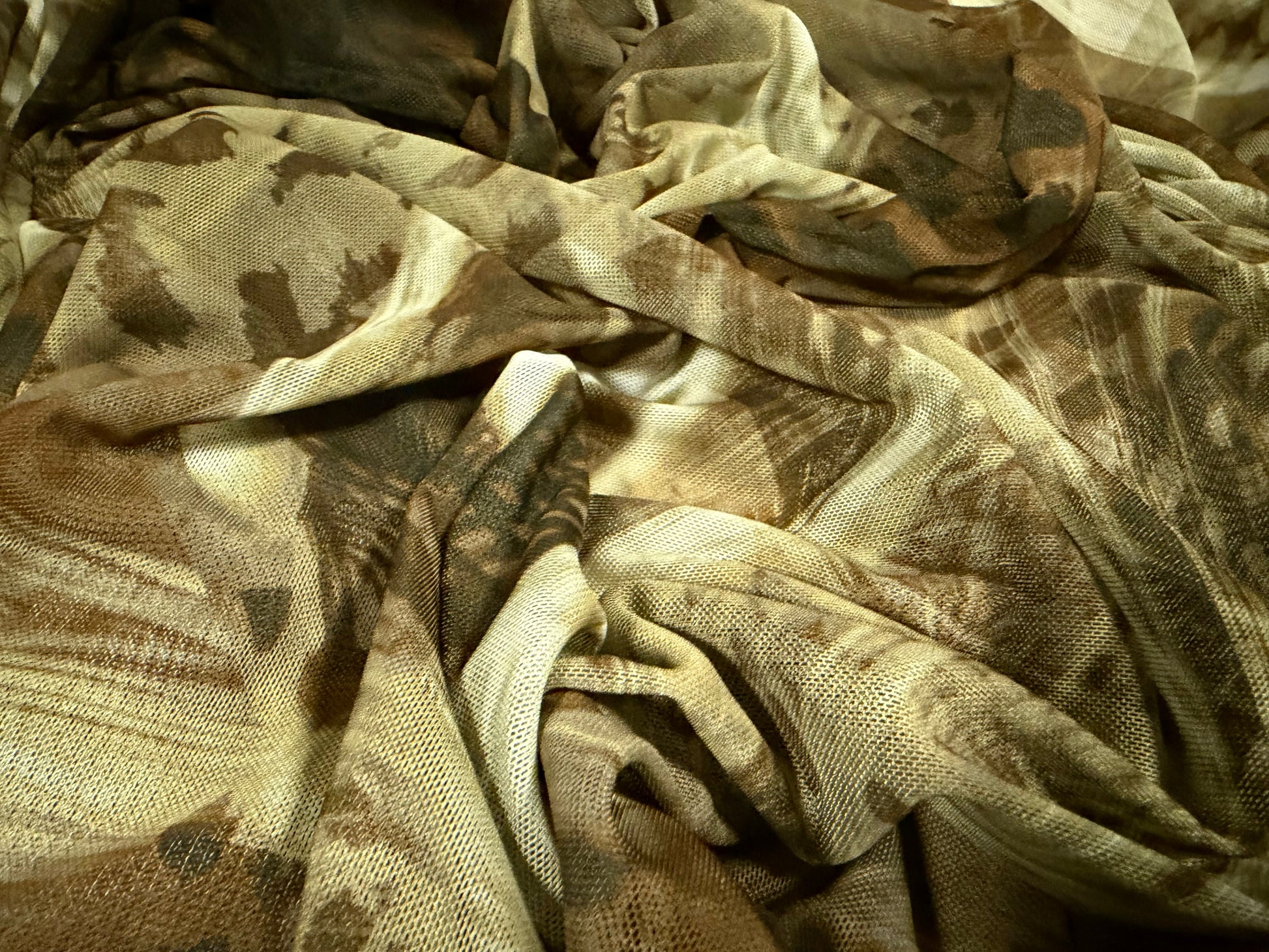 Power mesh net stretch spandex fabric, per metre - Hunter’s Camouflage print - green & brown