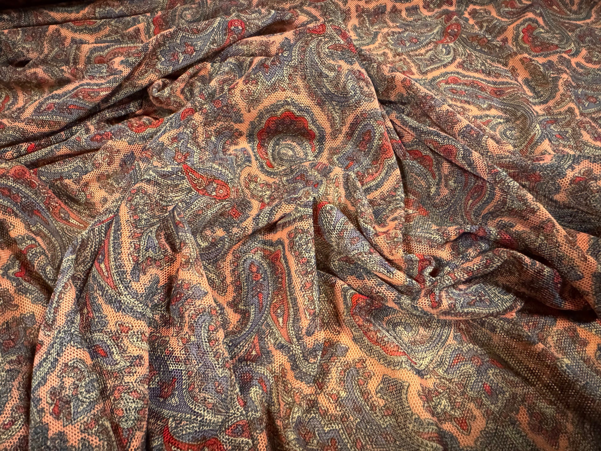 Power mesh net stretch spandex fabric, per metre - salmon pink, grey & red