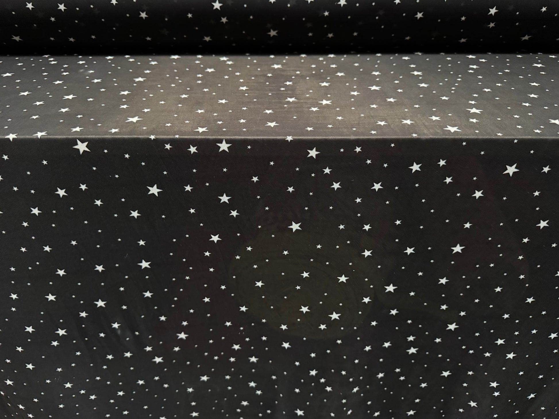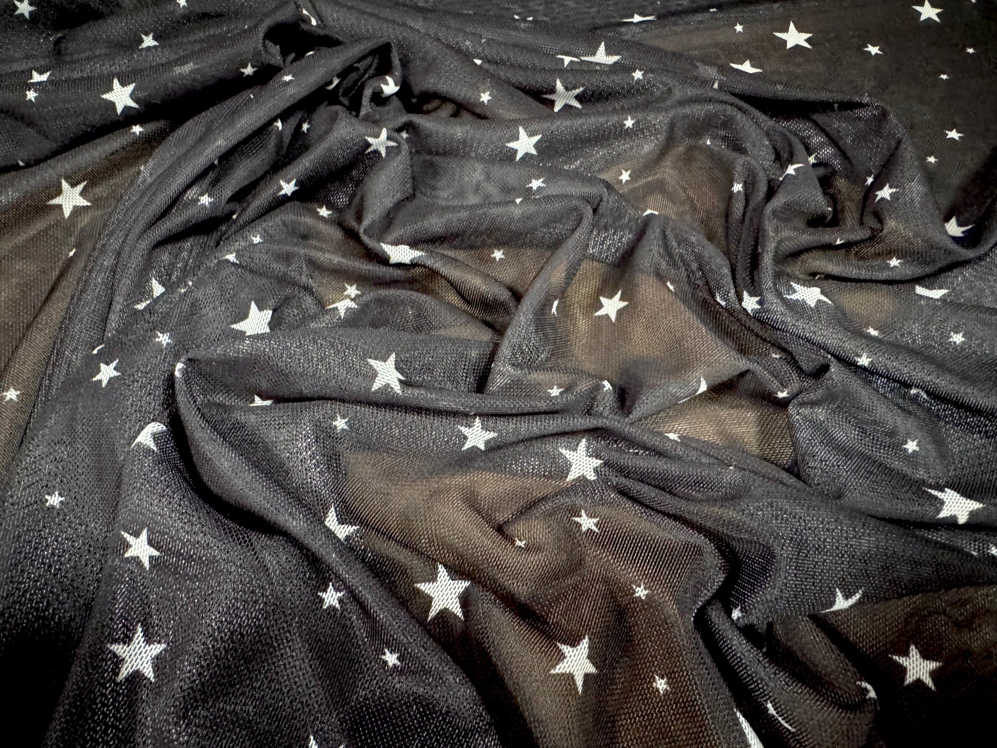 Power mesh net stretch spandex fabric, per metre - stars print - black & white