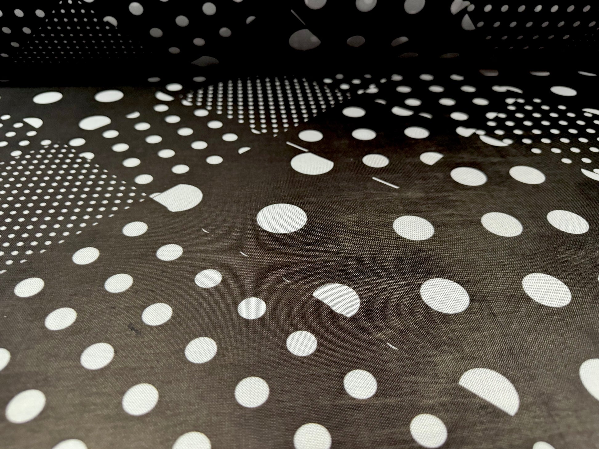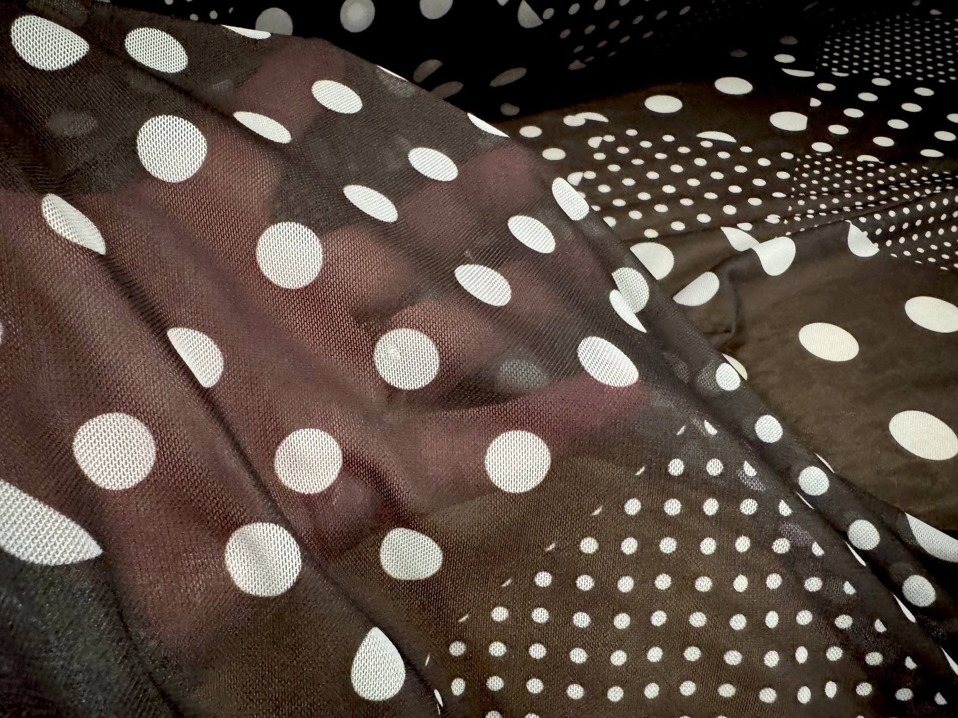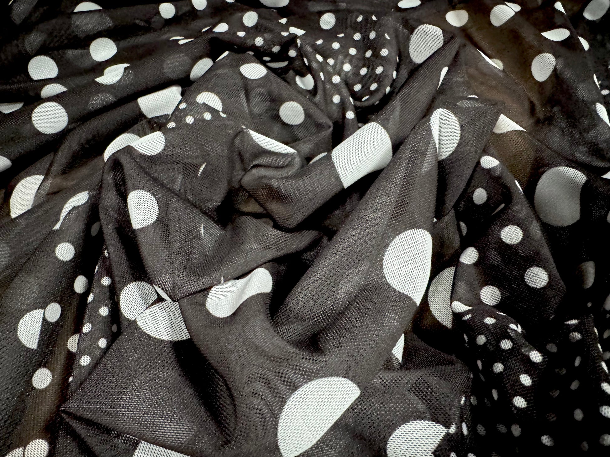Power mesh net stretch spandex fabric, per metre - polka dot patchwork print - black & white