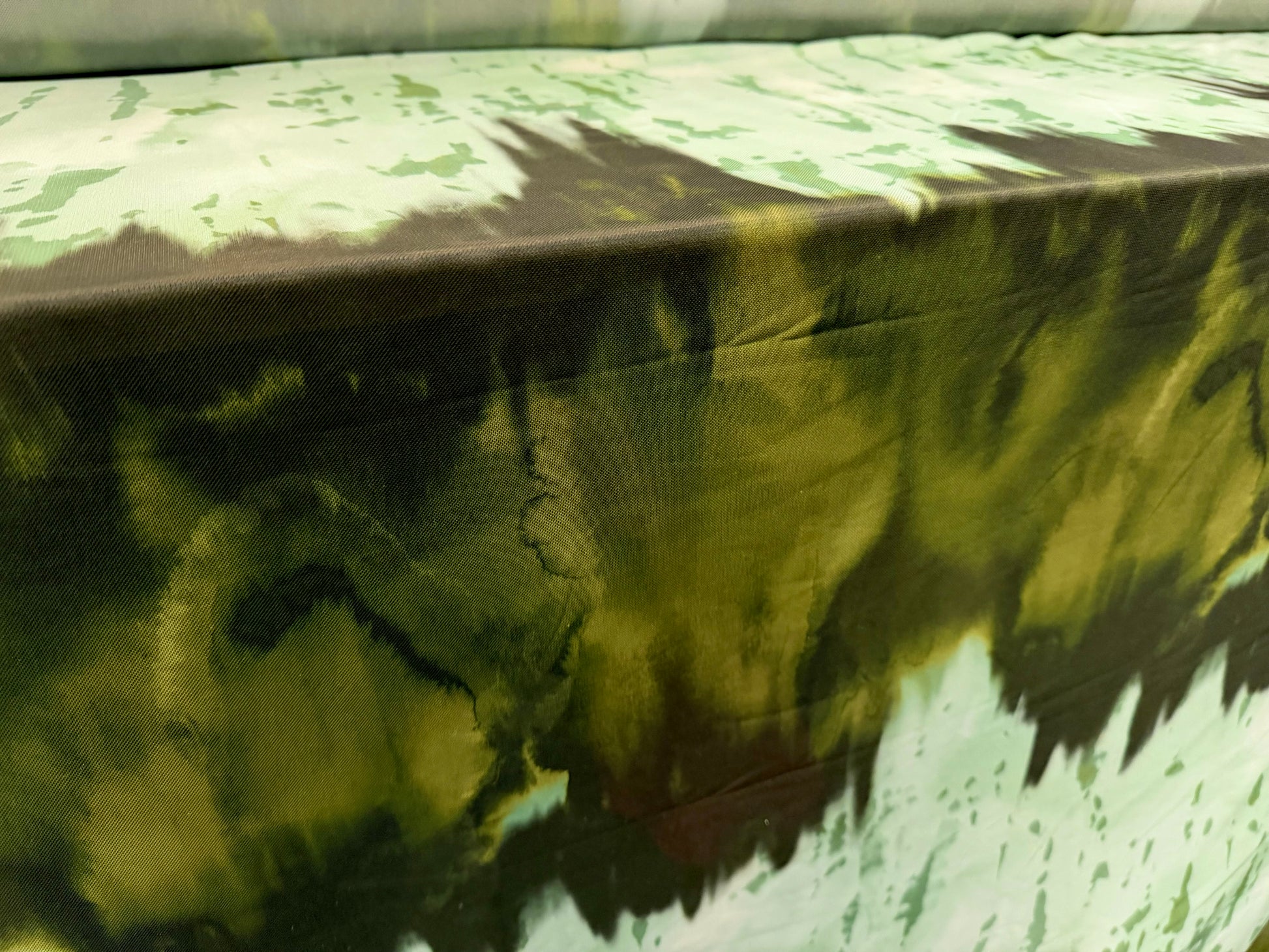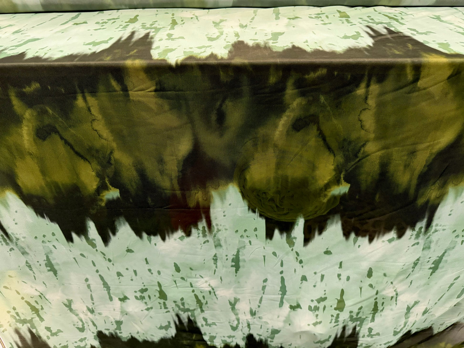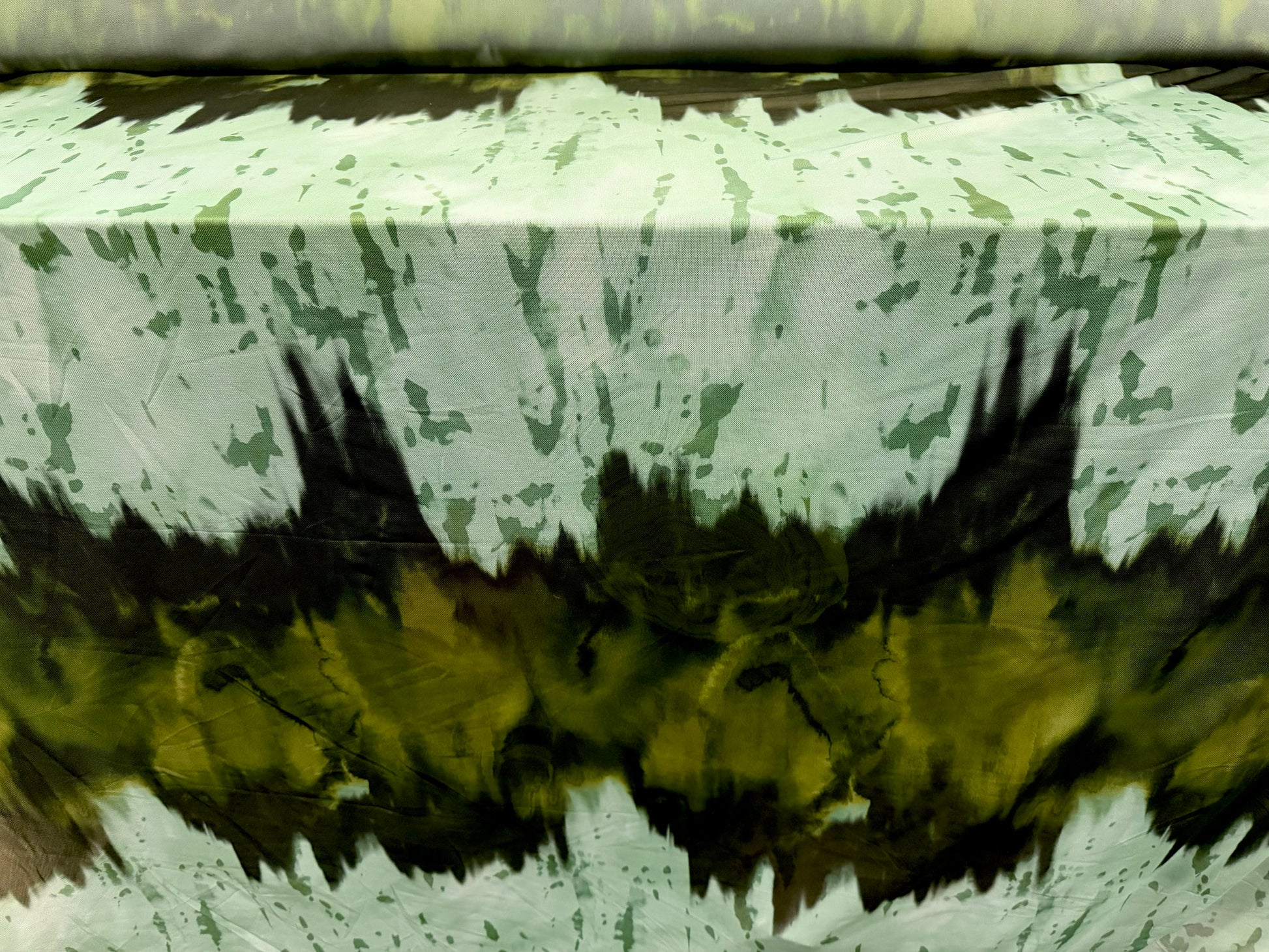 Power mesh net stretch spandex fabric, per metre - paint splatter - mint & olive green