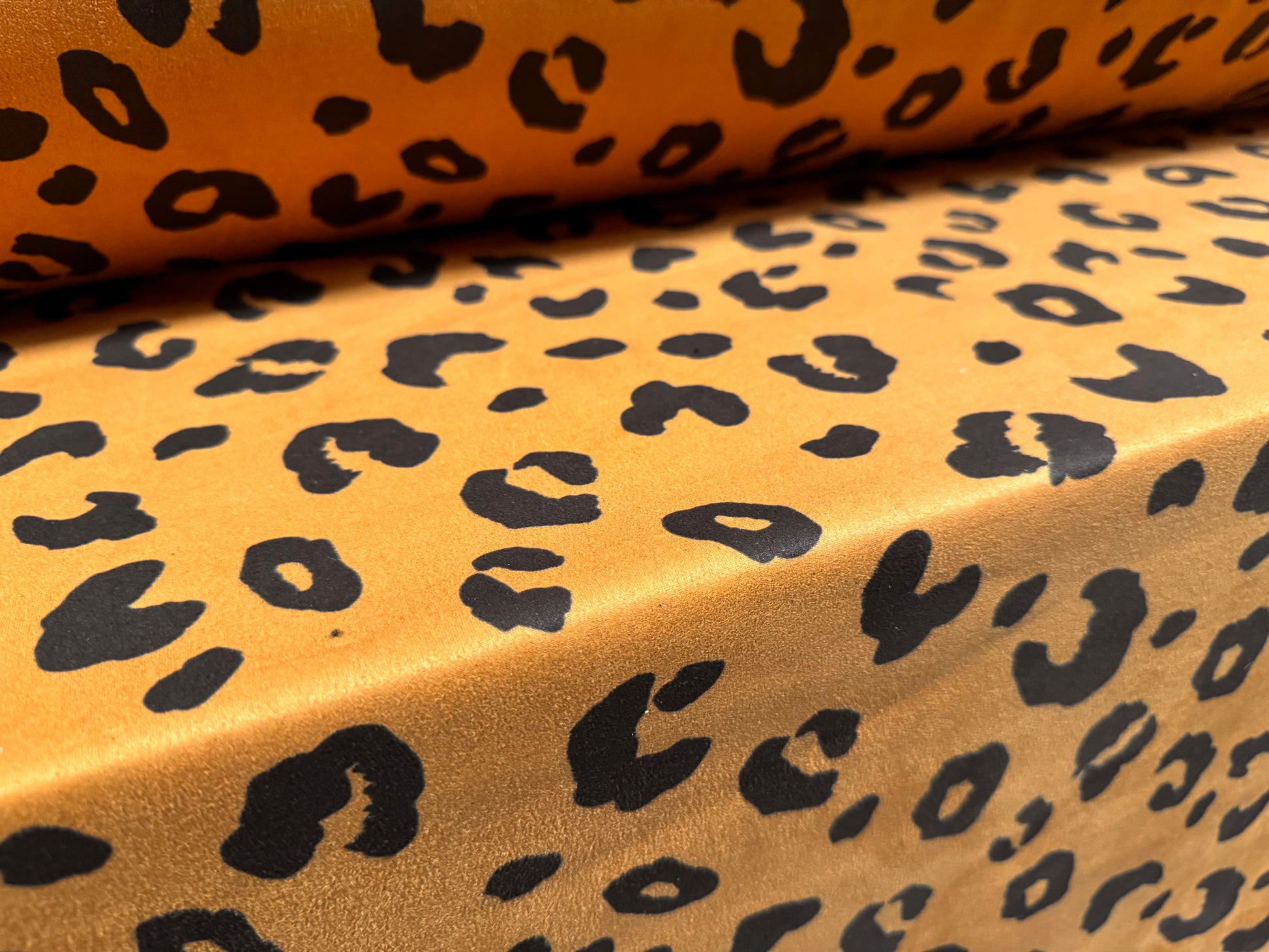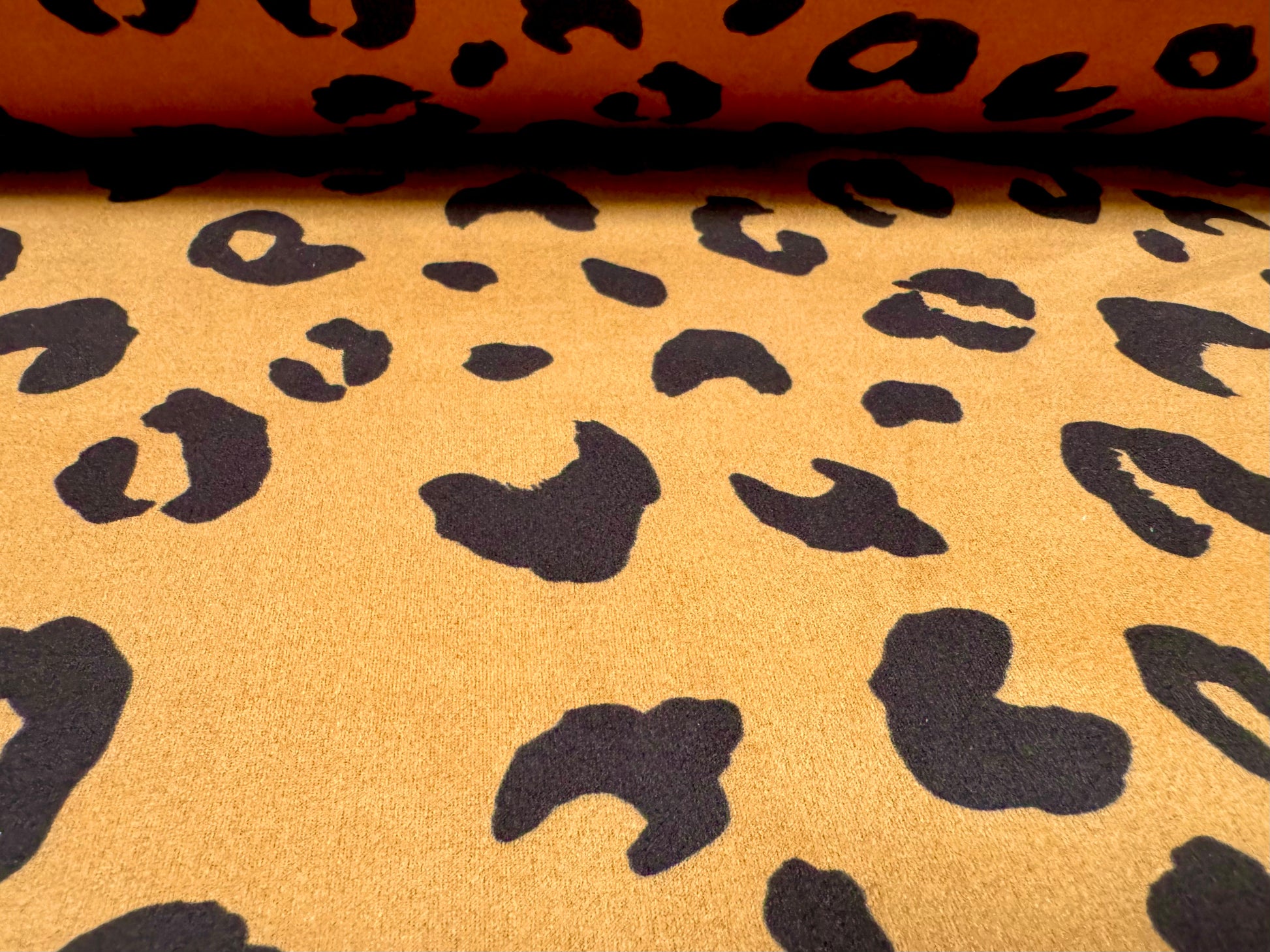 Scuba suede stretch spandex double jersey fabric, per metre - cheetah animal print - toffee
