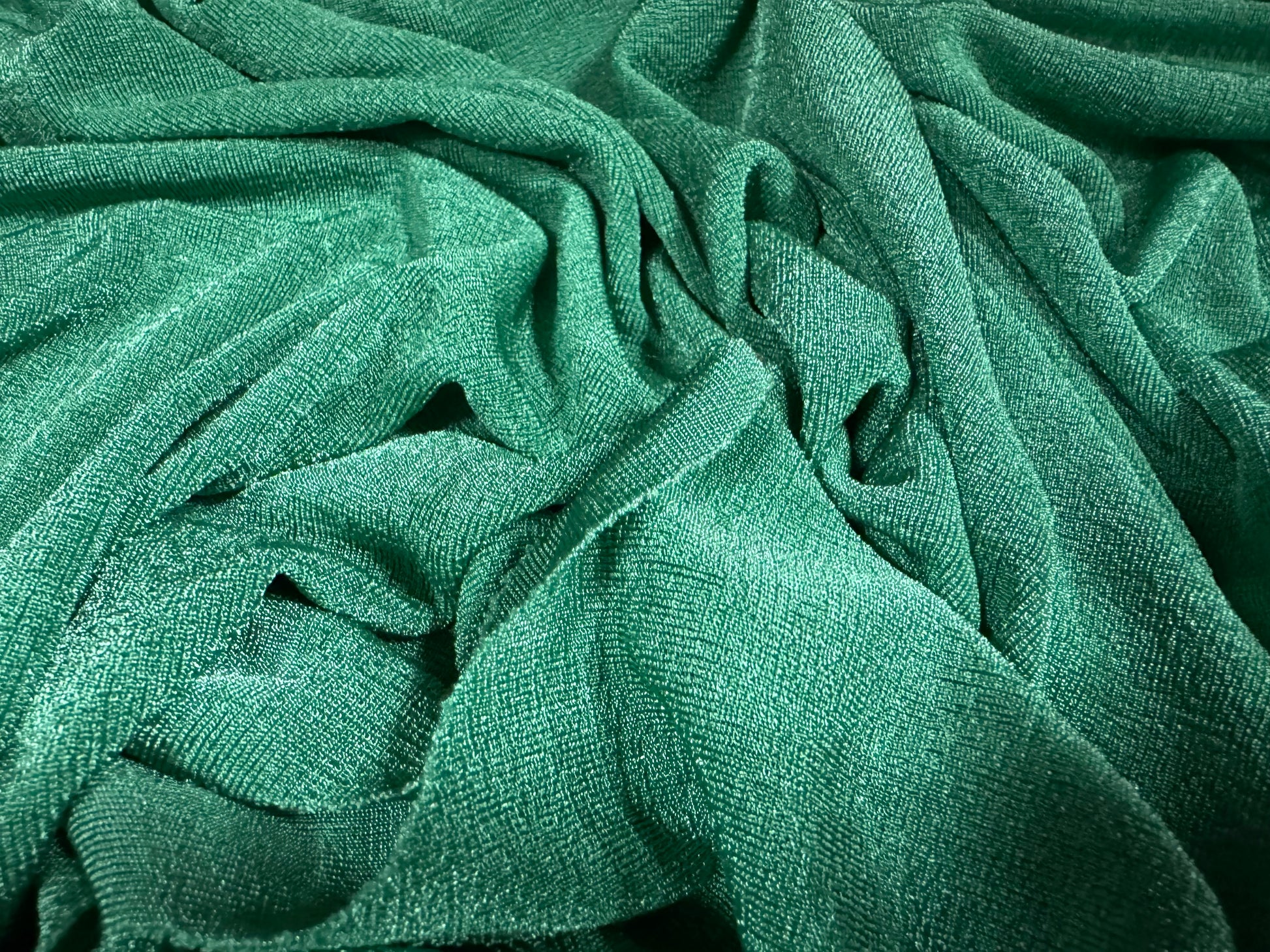 Slinky stretch jersey fabric. Slinky is a fairly heavy jersey fabric, rich in Elastane (spandex). Resistant to creasing, it is great for ladies tops, culottes, slinky dresses and the like. Width 135 cms.