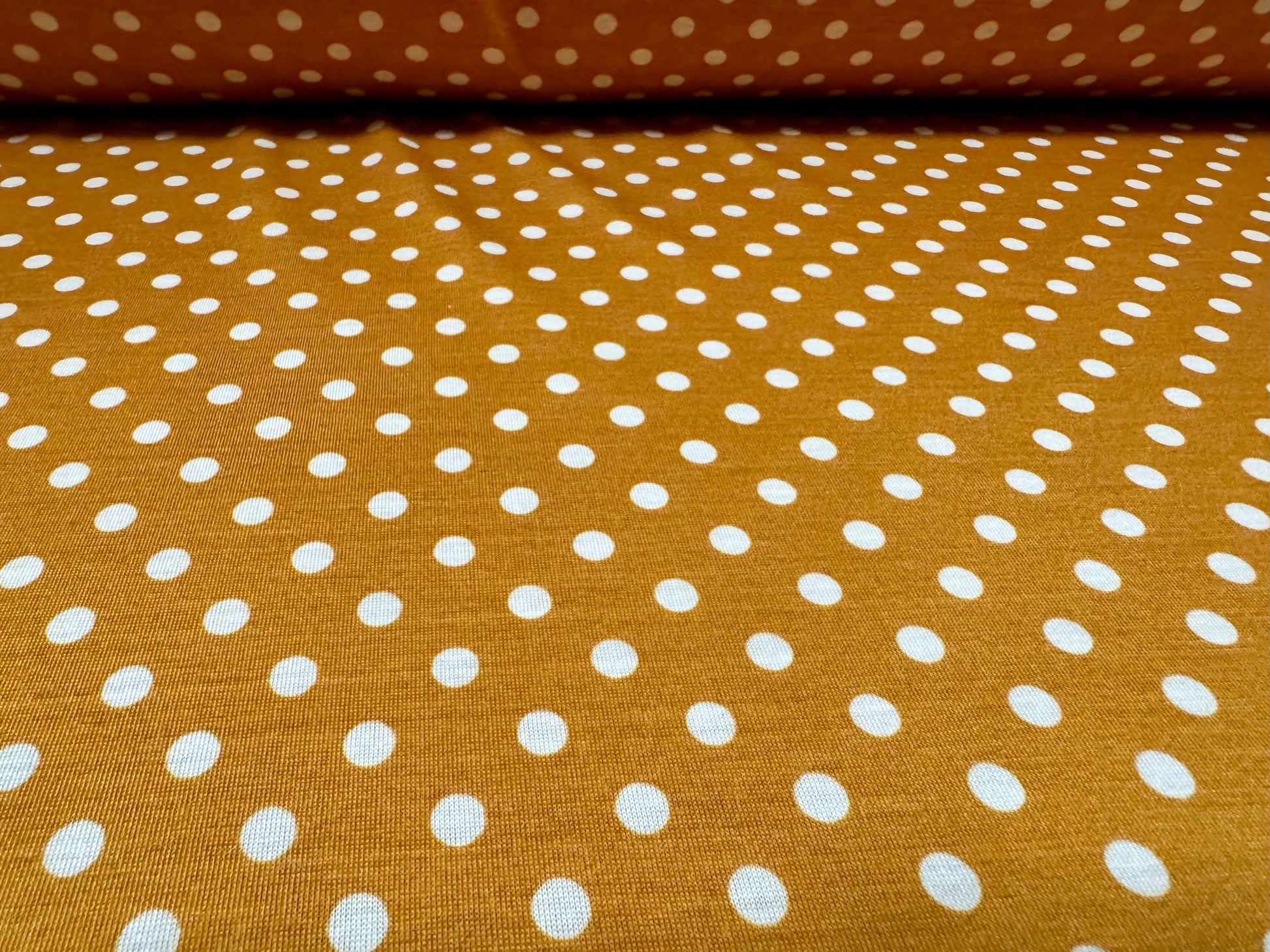 Soft handle single jersey fabric, per metre - spot print - mustard