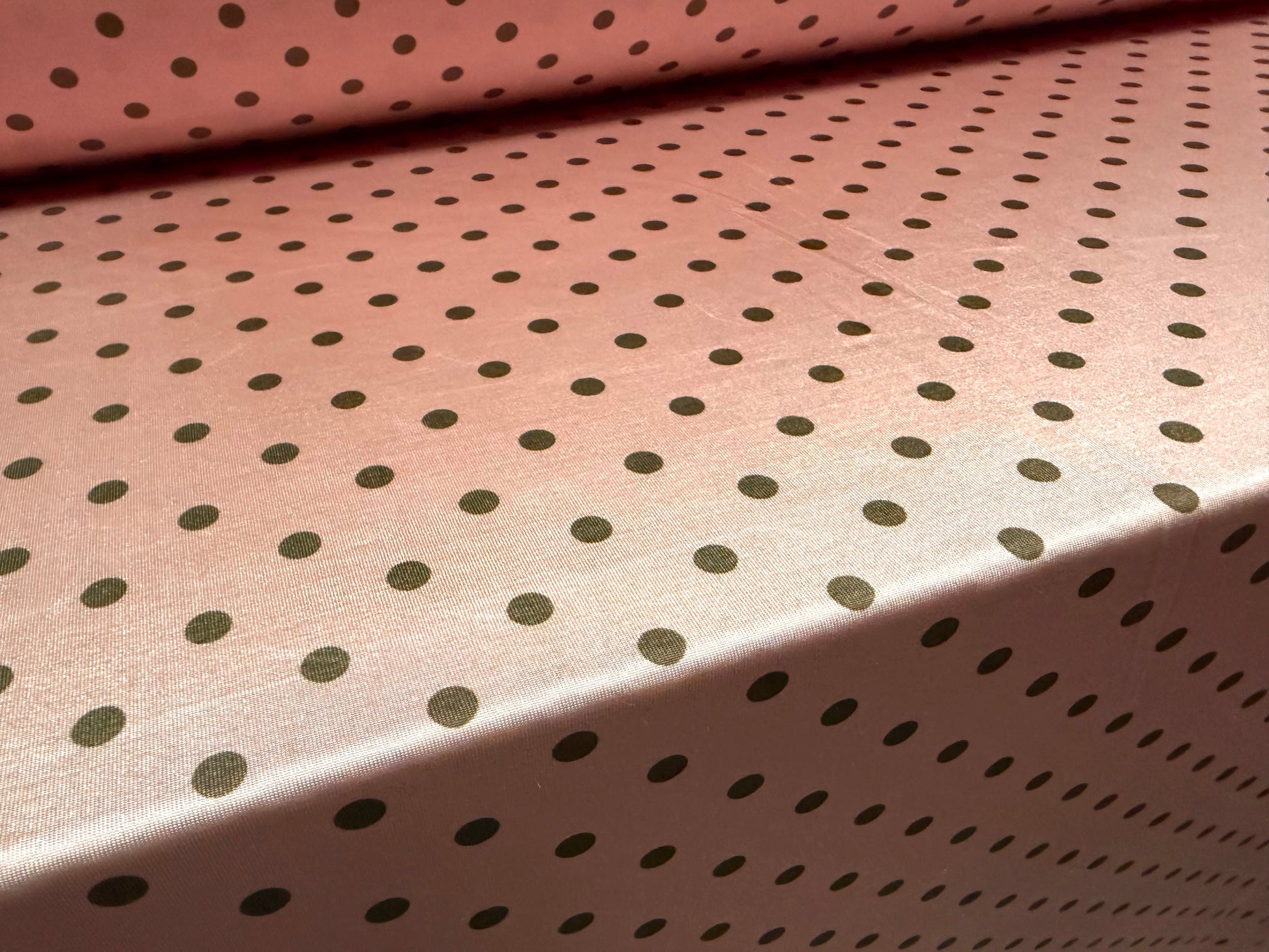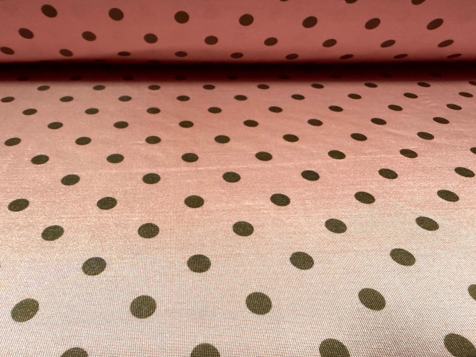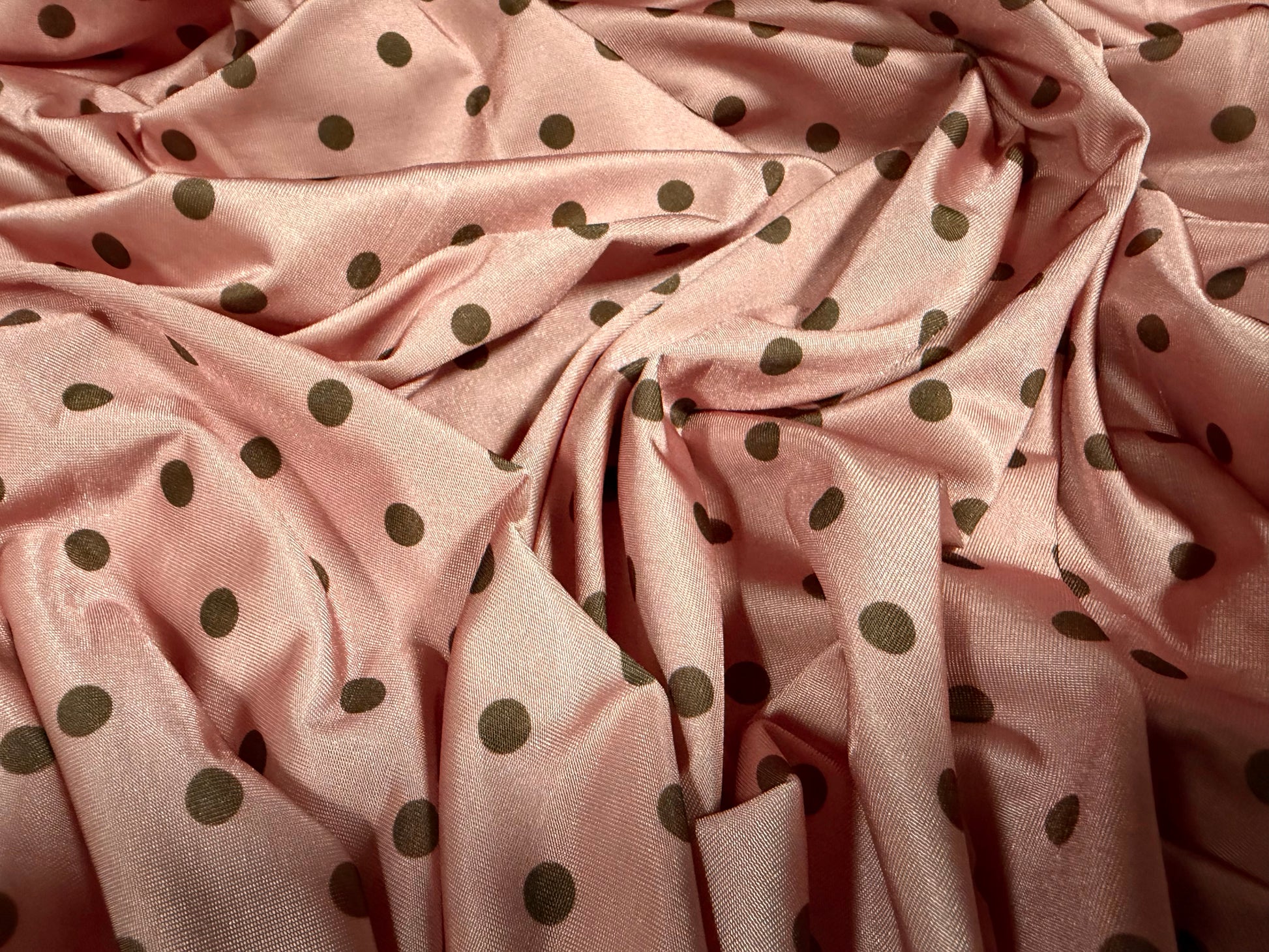 Soft touch stretch spandex jersey fabric, per metre - polka dot print - dusky pink & brown